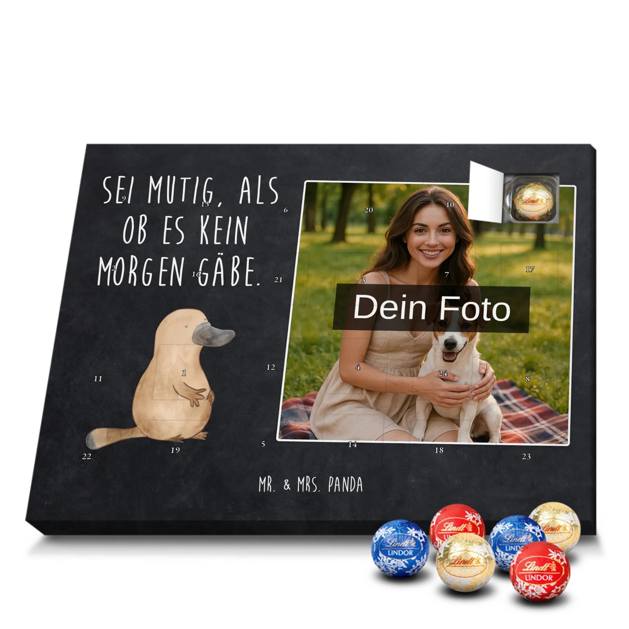 Personalisierter Schoko Foto Adventskalender Schnabeltier Mut - Classic - Kreidetafel