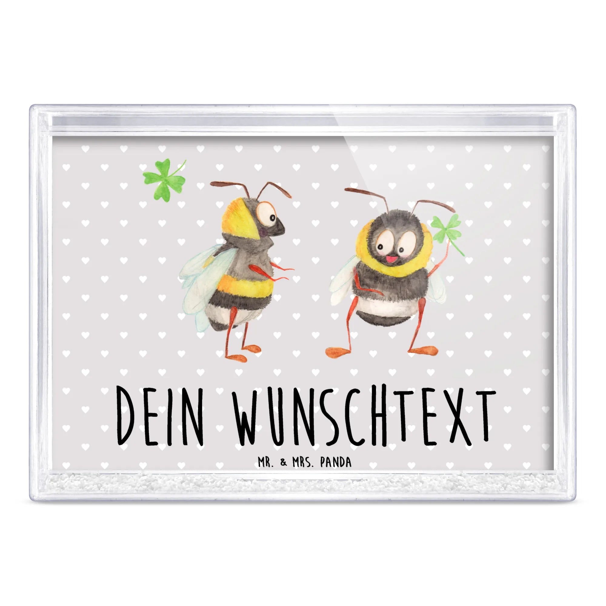 Mit der Möglichkeit, den Schüttelrahmen mit Deinem eigenen Wunschnamen zu personalisieren, wird er zu einem ganz besonderen Unikat, das Herzen höher schlagen lässt. Die Bienen halten ein vierblättriges Kleeblatt – ein Symbol für Glück und Liebe, das perfekt zu den intensiven Gefühlen passt, die Du für Deine*n Liebste*n empfindest.