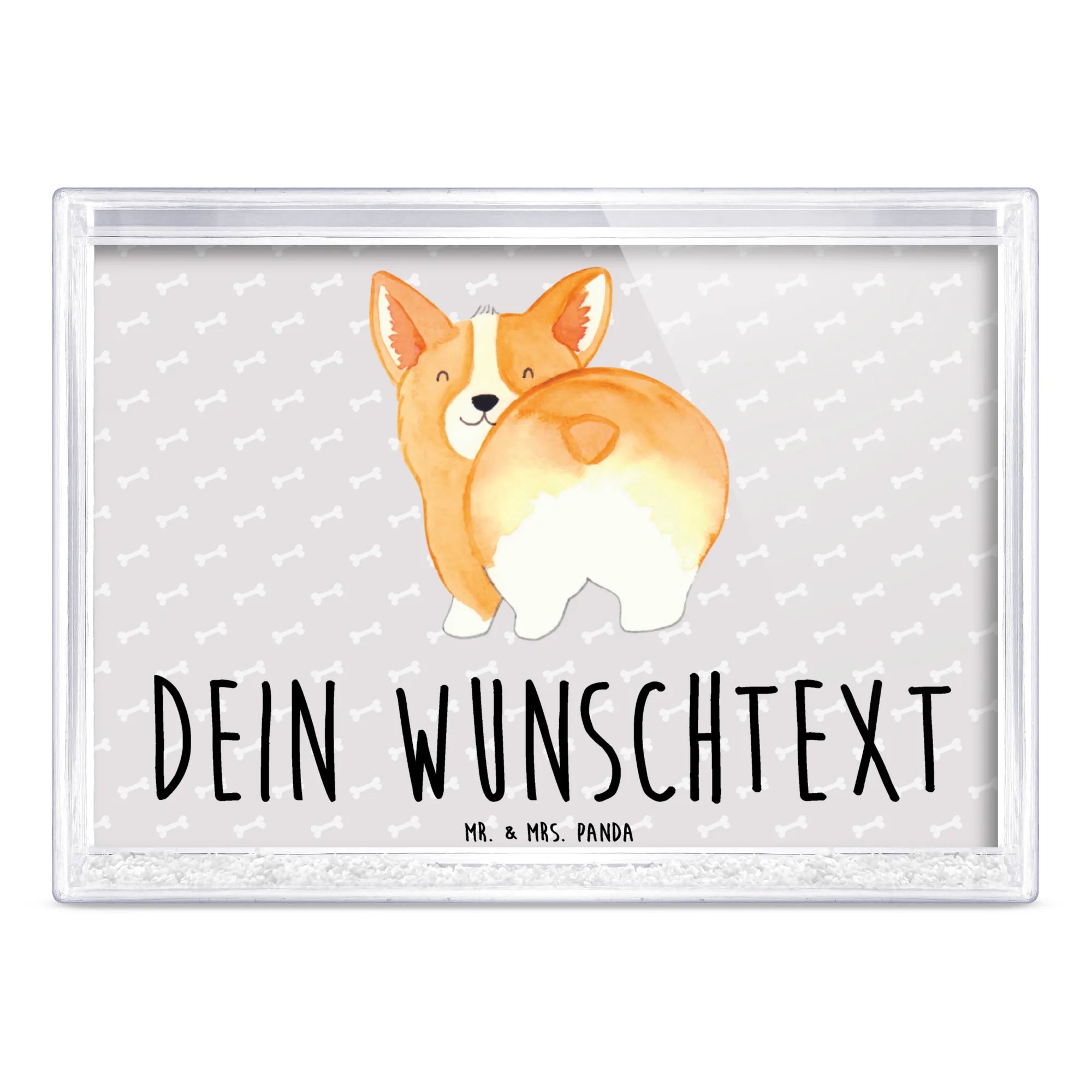 Entdecke den wunderschönen personalisierten Schüttelrahmen mit dem niedlichen Corgie Po aus der Hunde Kollektion von Mr. & Mrs. Panda! Dieses liebevoll gestaltete Deko-Element ist das perfekte Geschenk für Hundeliebhaber und stolze Hundebesitzer. Der Schüttelrahmen zeigt einen entzückenden Corgi, der stolz seinen Po in die Kamera hält. Ein echter Blickfang für jedes Zuhause!