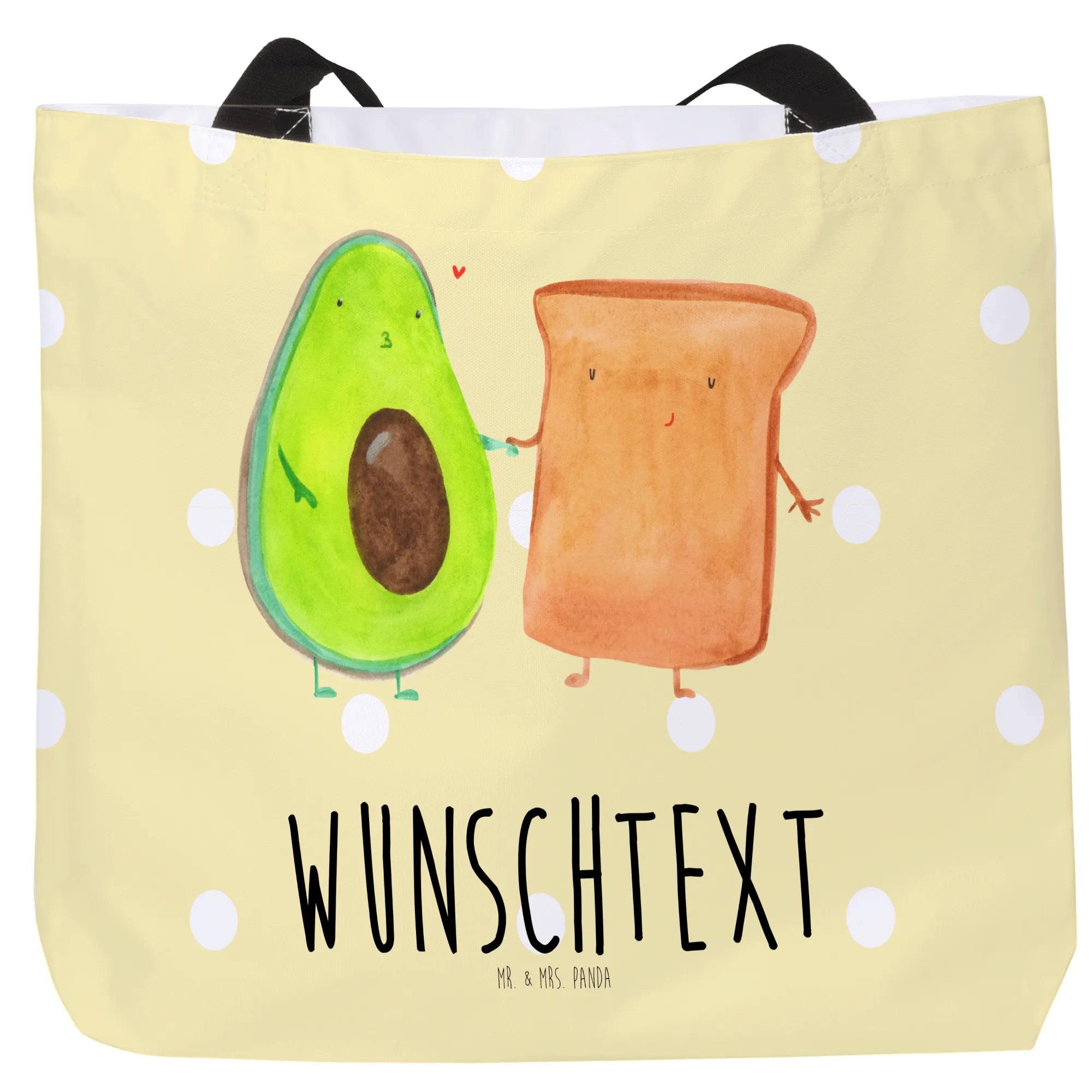 Entdecke den perfekten Begleiter für alle Lebenslagen – unseren personalisierten Shopper mit dem bezaubernden Motiv Avocado + Toast von Mr. & Mrs. Panda! Dieser wunderbare Shopper ist nicht nur praktisch, sondern auch ein echter Hingucker. Die süße Avocado und das niedliche Toast, die sich verliebt an den Händen halten, strahlen Lebensfreude und Optimismus aus. Egal, ob du deinen Einkauf im Supermarkt erledigen, zum Strand fahren oder einfach nur mit Freunden bummeln möchtest, dieser Shopper ist der ideale Partner an deiner Seite.