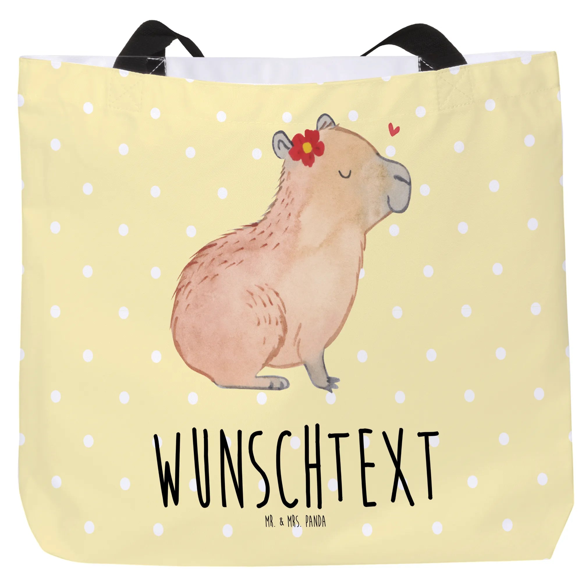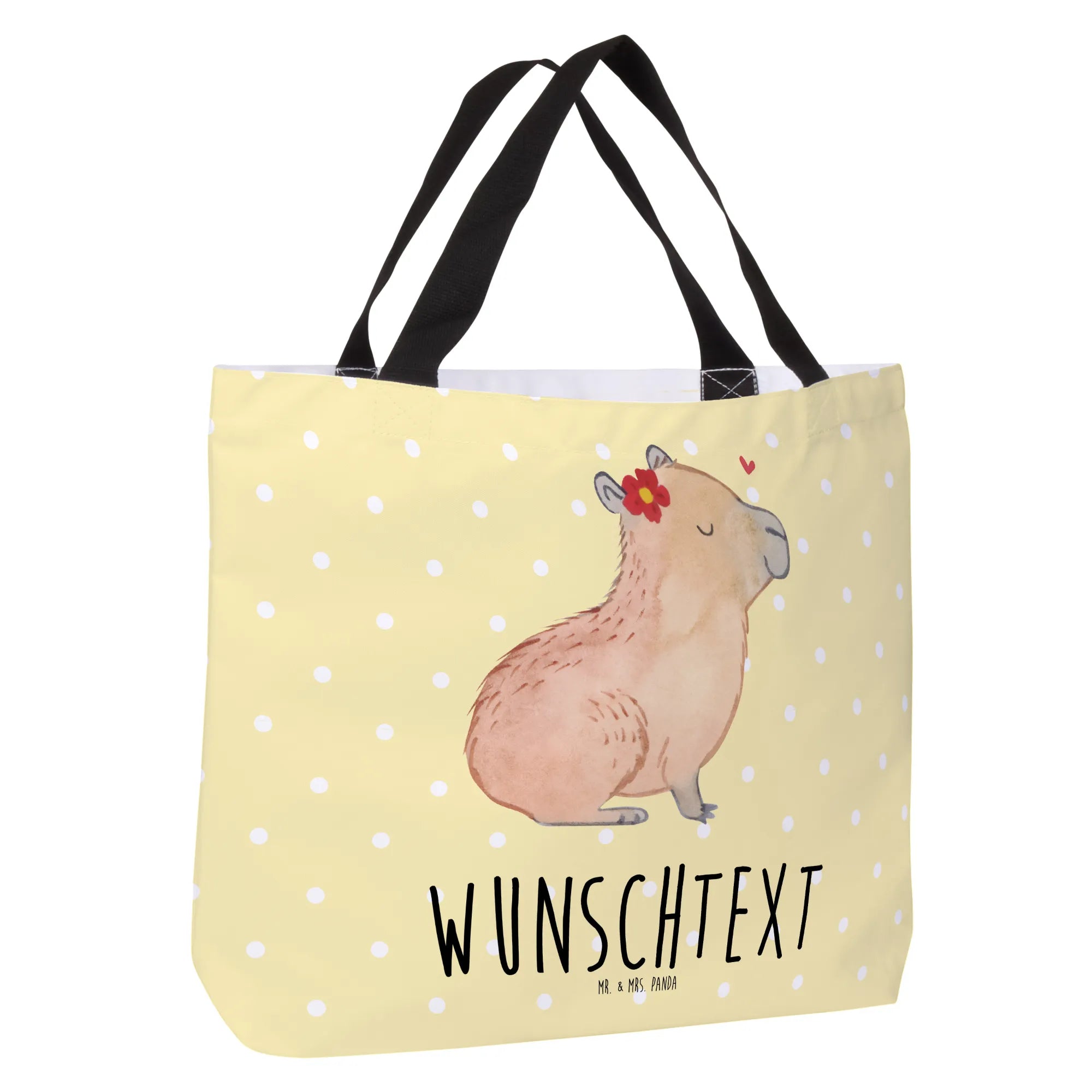 Entdecke den perfekten personalisierten Shopper von Mr. & Mrs. Panda mit dem wundervollen Motiv 'Capybara Blume' aus der bezaubernden Small World Kollektion. Dieser Shopper ist mehr als nur eine Einkaufstasche – er ist ein Ausdruck von Persönlichkeit und Freude!