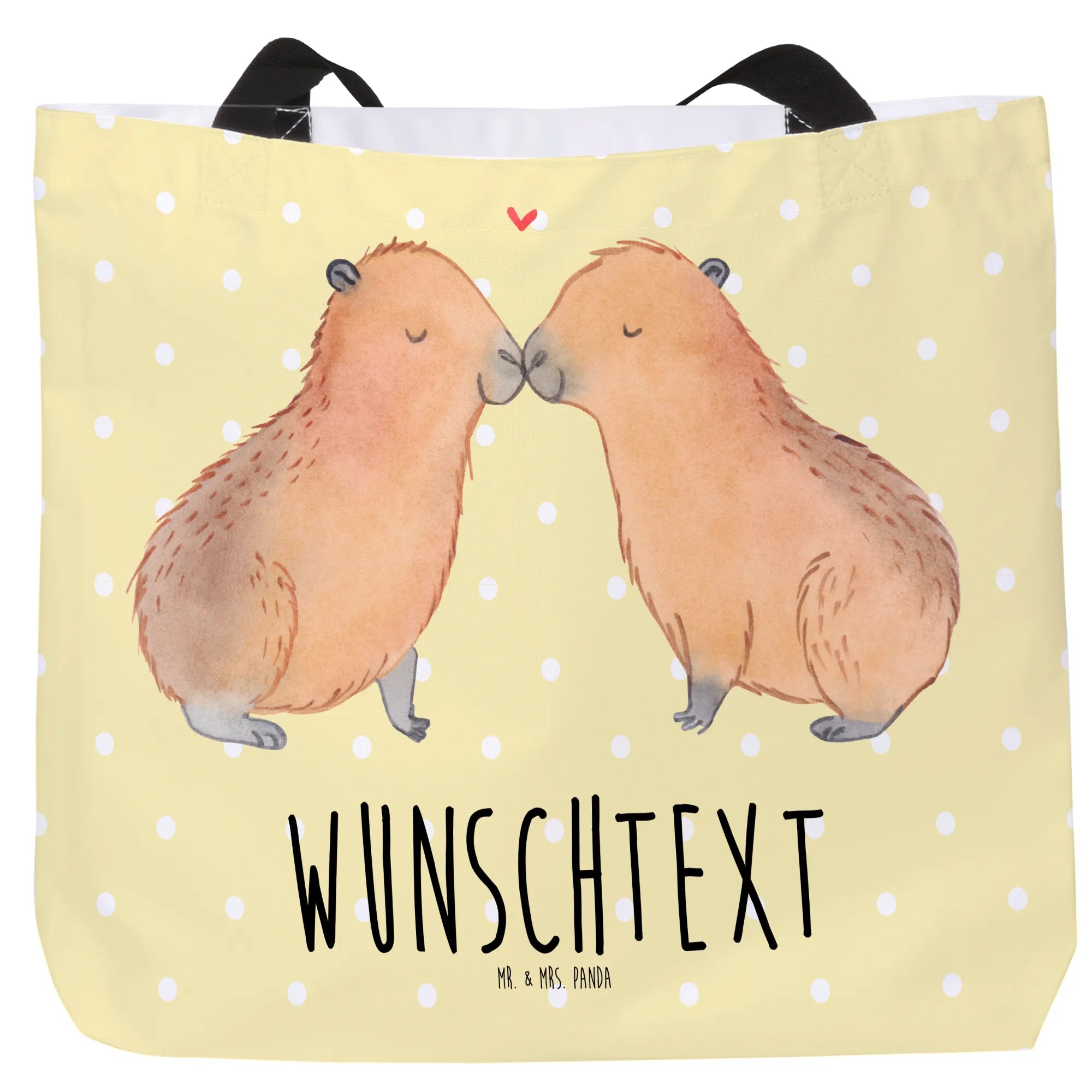 Wenn du auf der Suche nach einem ganz besonderen Geschenk für deinen Partner bist, schau dir unbedingt unseren personalisierten Shopper mit dem süßen Motiv "Capybara Liebe" aus der Small World Kollektion an! Dieser hochqualitative Shopper von Mr. & Mrs. Panda wird nicht nur deinen Liebsten begeistern, sondern ist auch ein echter Hingucker beim Einkaufen oder beim nächsten Strandbesuch.