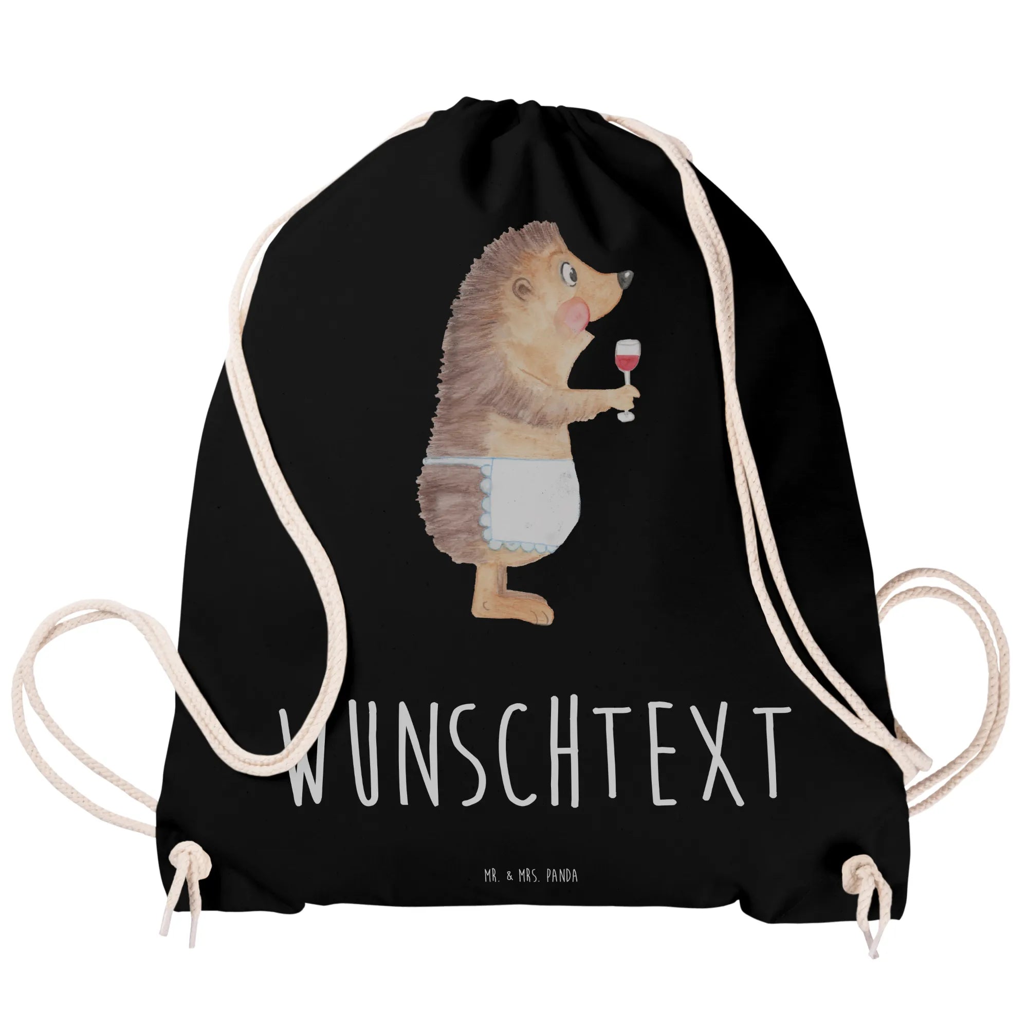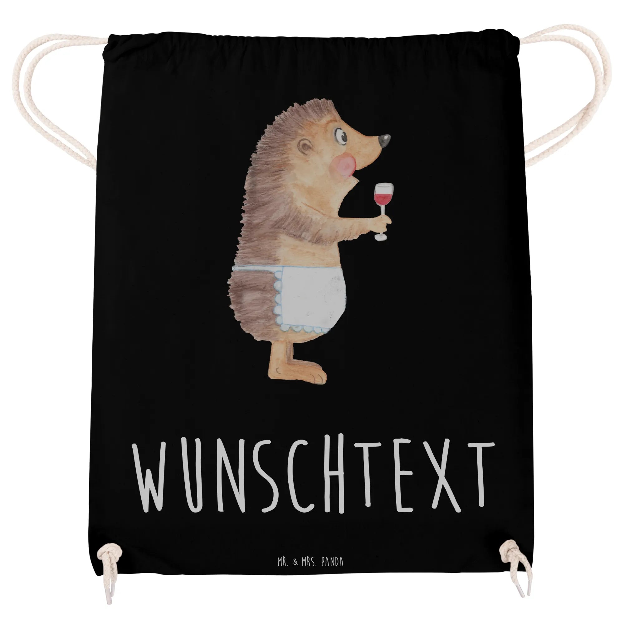 Jutebeutel personalisiert Igel Wein - Schwarz