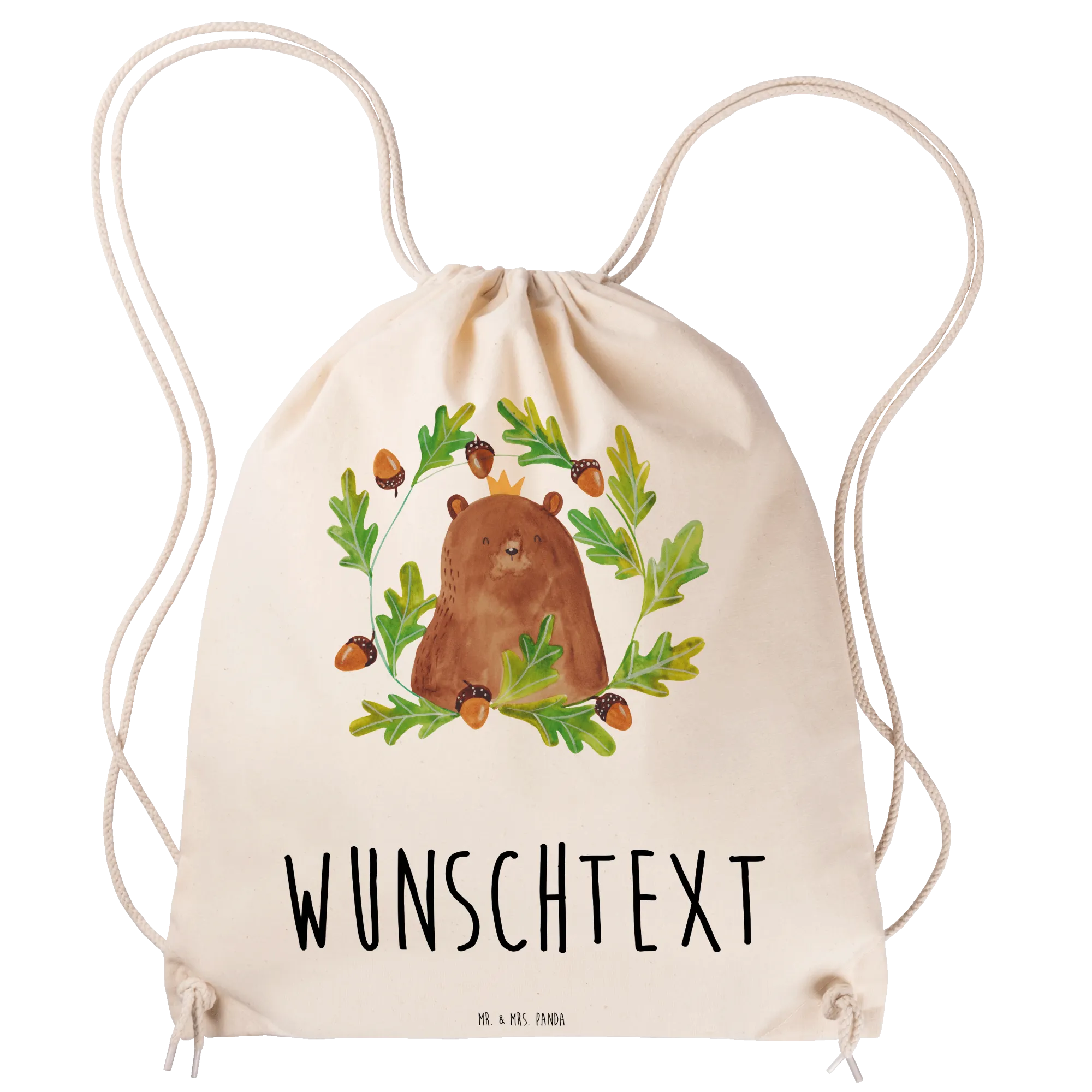 Entdecke unseren personalisierten Sportbeutel mit dem süßen Motiv des Bär Königs von Mr. & Mrs. Panda! Dieser Sportbeutel ist nicht nur praktisch, sondern auch ein ganz besonderes Geschenk für alle, die ihren persönlichen Stil zeigen möchten.