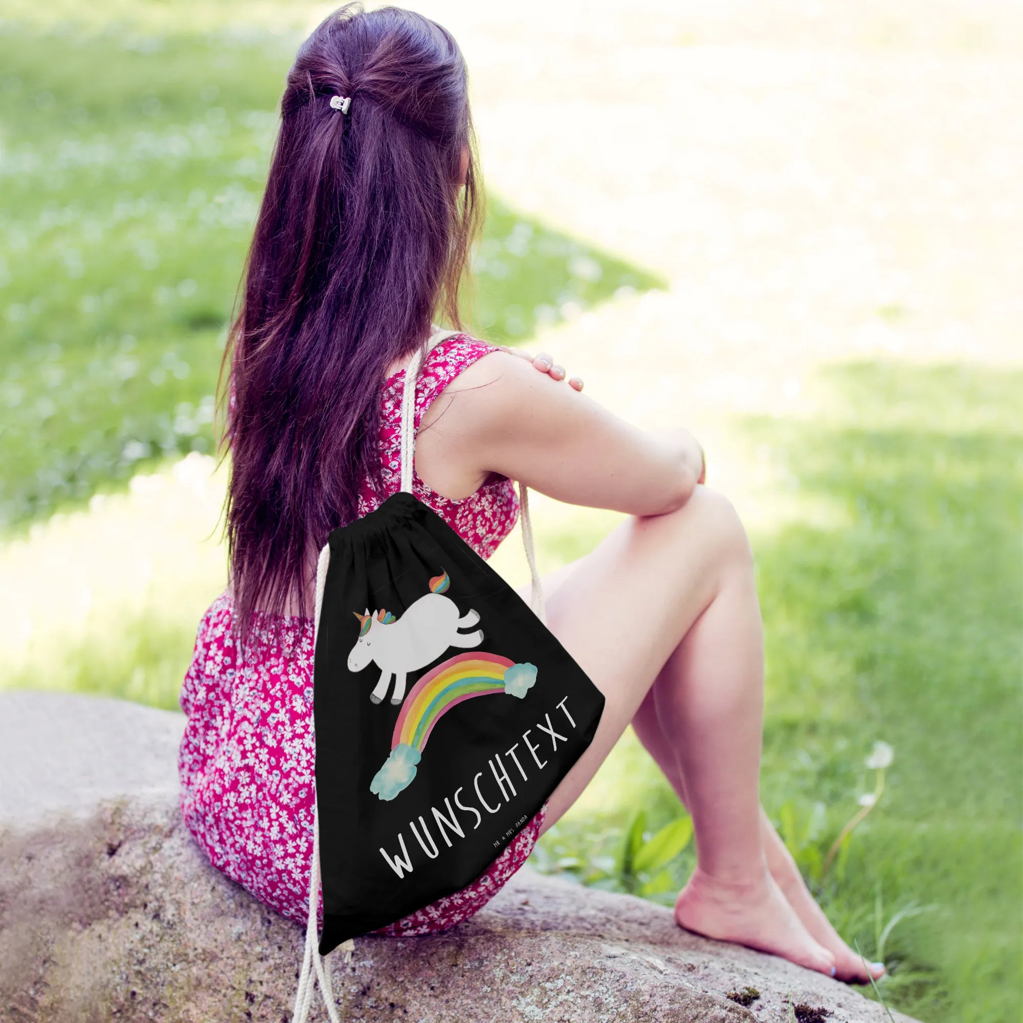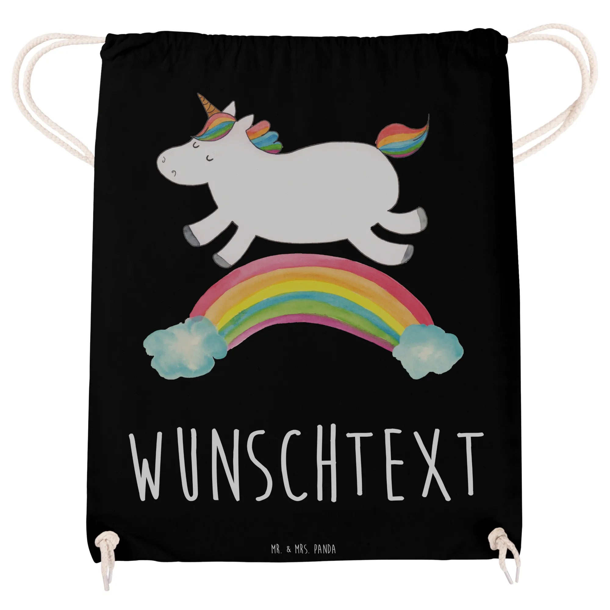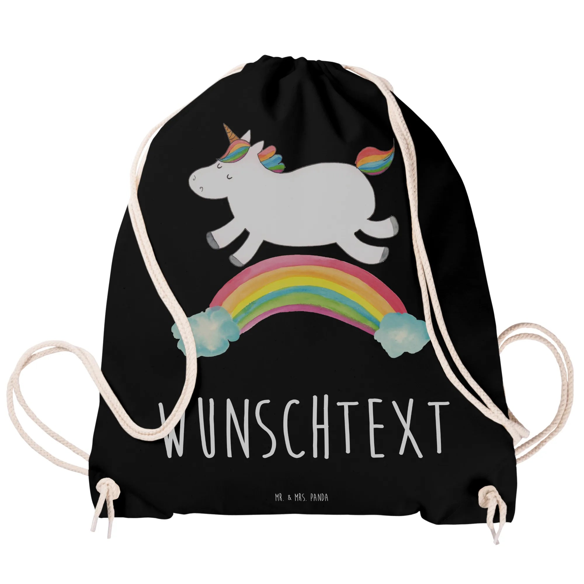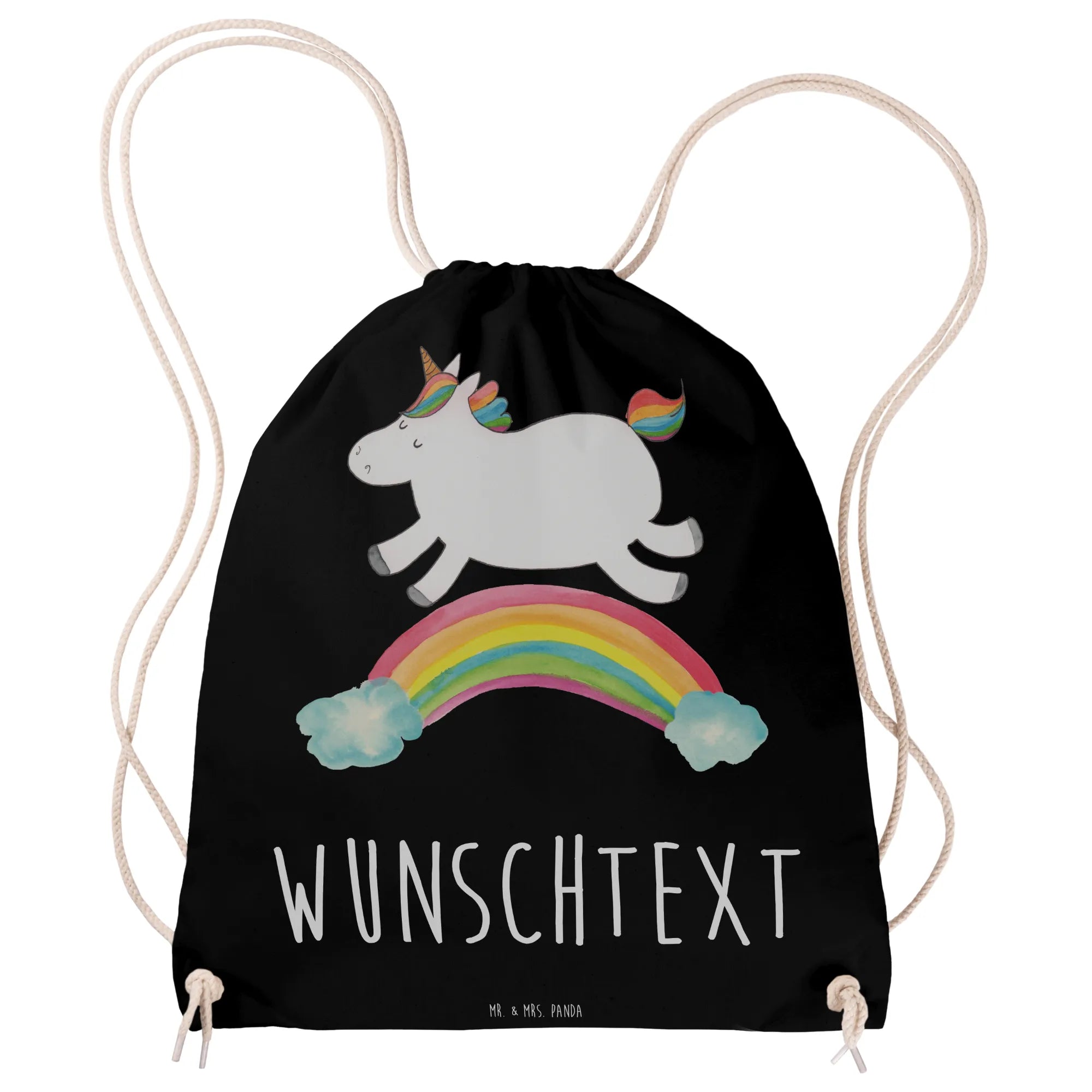 Personalisierter Sportbeutel Einhorn Regenbogen - Schwarz