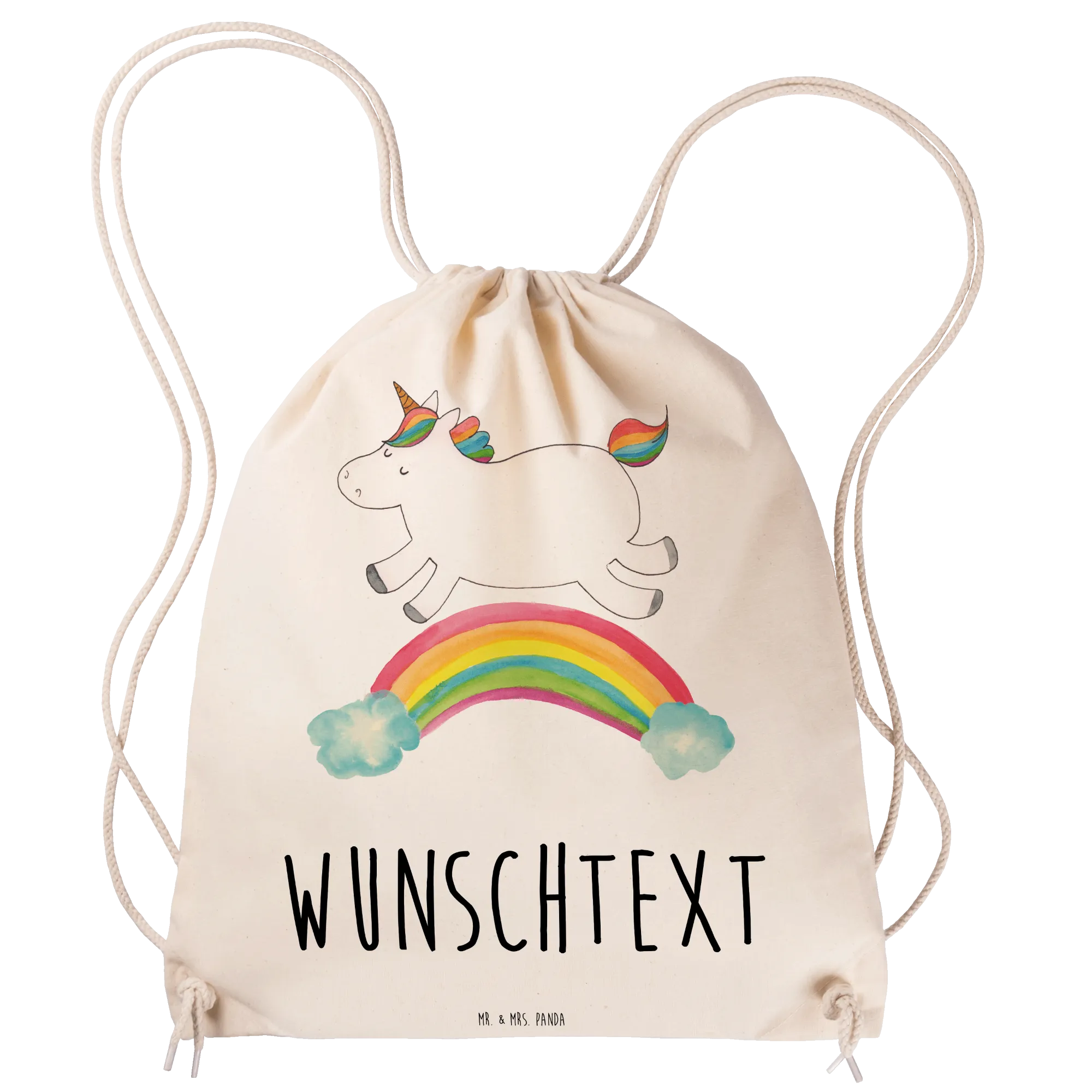 Ob als persönliches Geschenk mit Name oder Wunschtext, oder einfach für dich selbst, der personalisierte Sportbeutel Einhorn Regenbogen ist die beste Wahl, um im Alltag mehr Farbe und Freude zu bringen. Mach dir oder deinem Lieblingsmensch eine Freude mit diesem einzigartigen Sportbeutel aus der Einhorn-Kollektion von Mr. & Mrs. Panda!