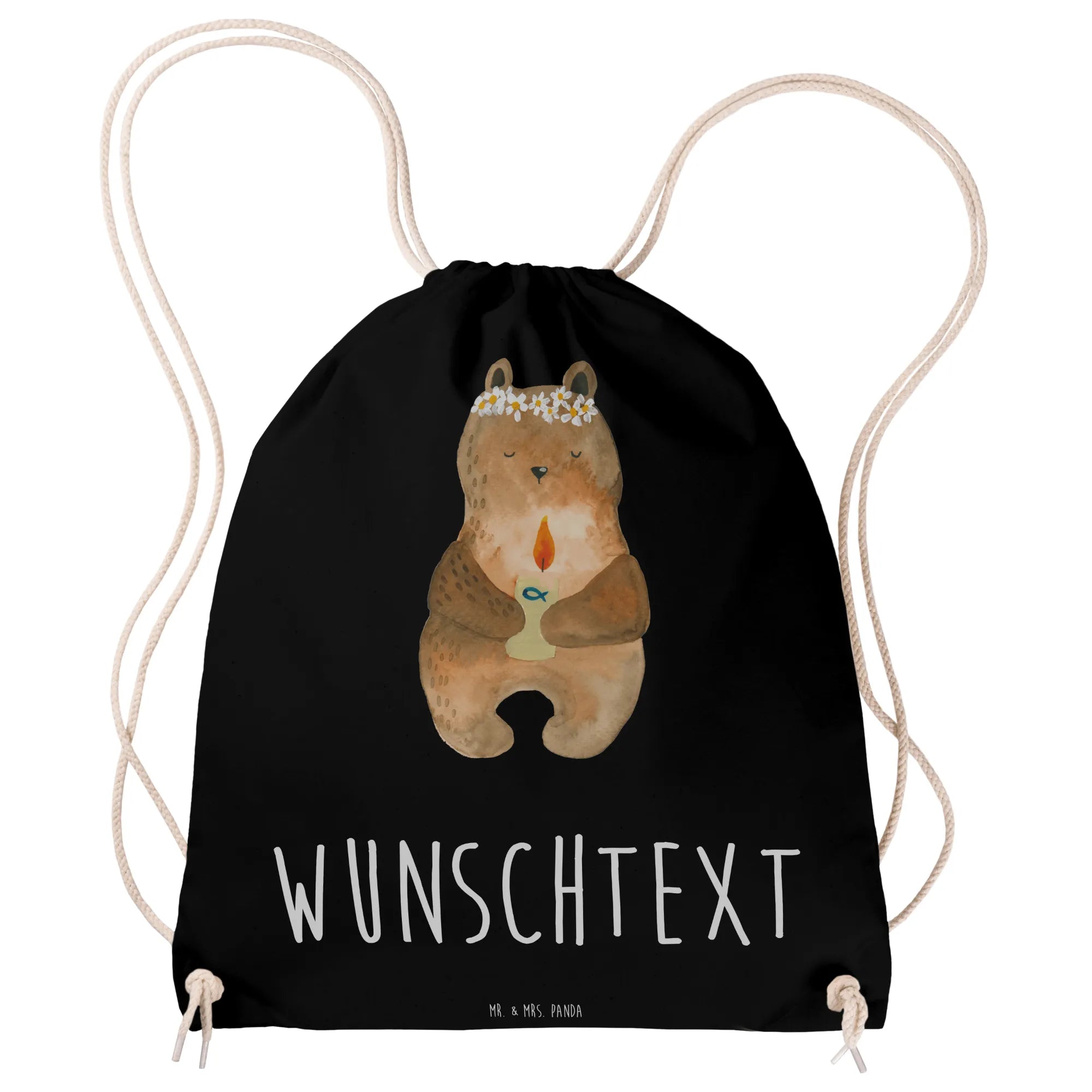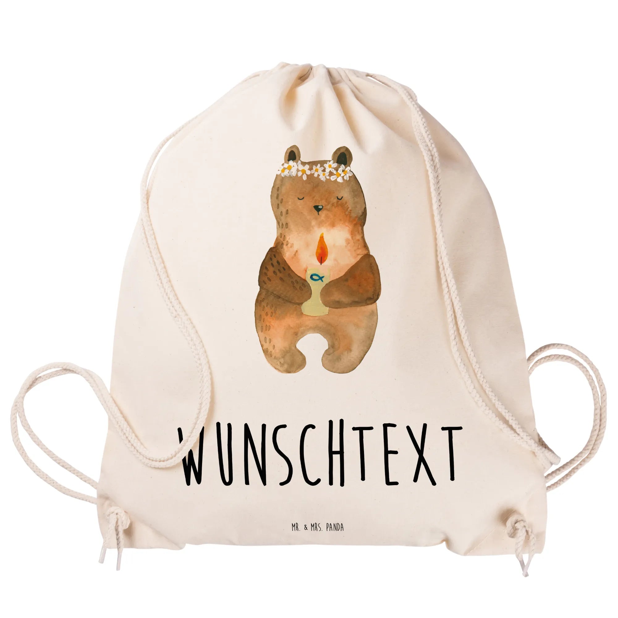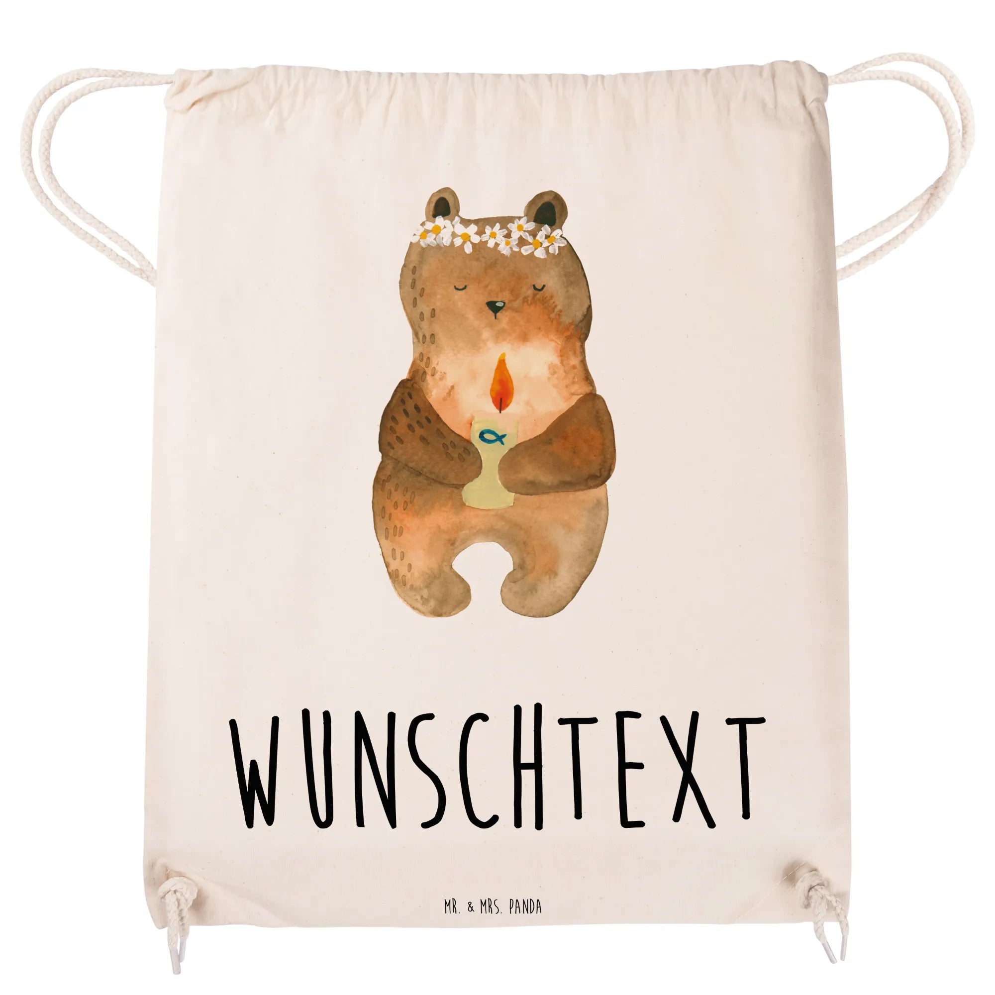 Der personalisierte Sportbeutel Kommunion-Bär von Mr. & Mrs. Panda ist das perfekte Geschenk für Kinder zur Kommunion. Mit seinem niedlichen Design und dem charmanten Bär mit Blumenkrone und Kerze in der Hand, vermittelt er nicht nur Freude, sondern auch eine tiefere Bedeutung der Feier.