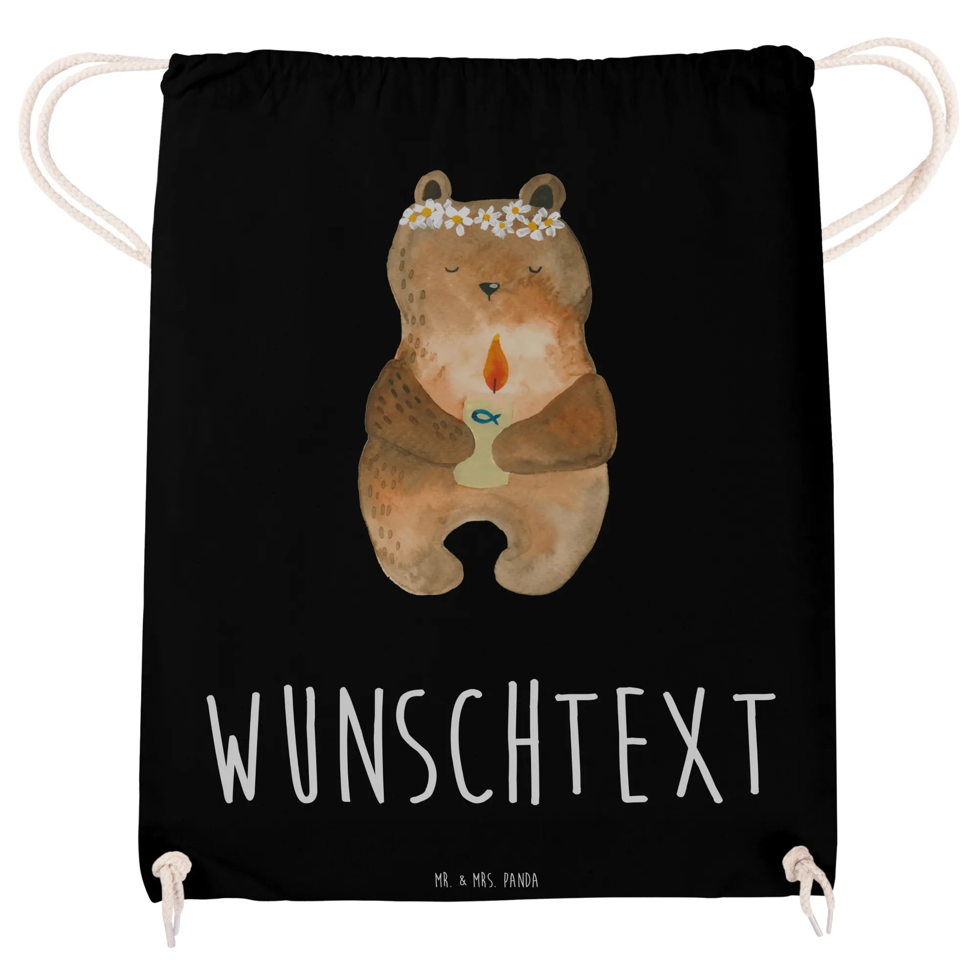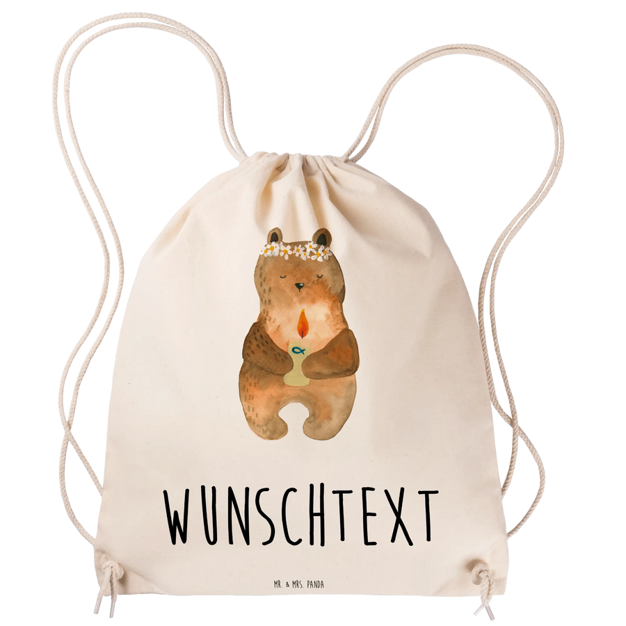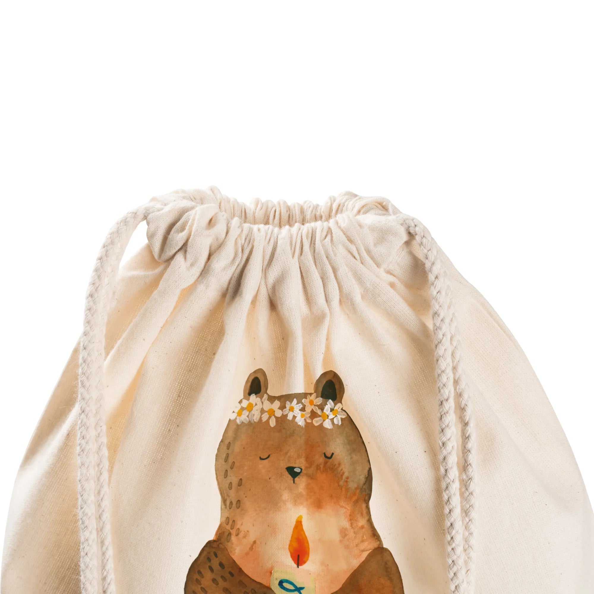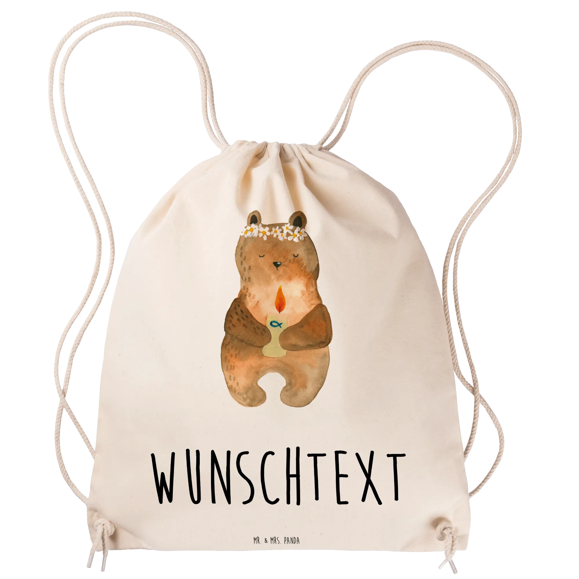 Der personalisierte Sportbeutel Kommunion-Bär von Mr. & Mrs. Panda ist das perfekte Geschenk für Kinder zur Kommunion. Mit seinem niedlichen Design und dem charmanten Bär mit Blumenkrone und Kerze in der Hand, vermittelt er nicht nur Freude, sondern auch eine tiefere Bedeutung der Feier.