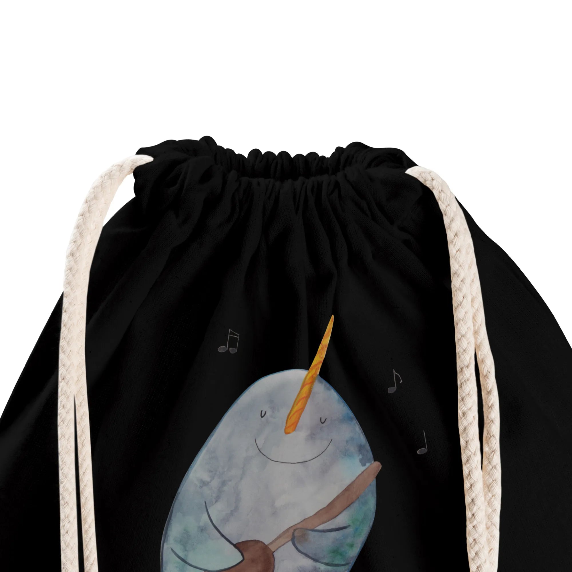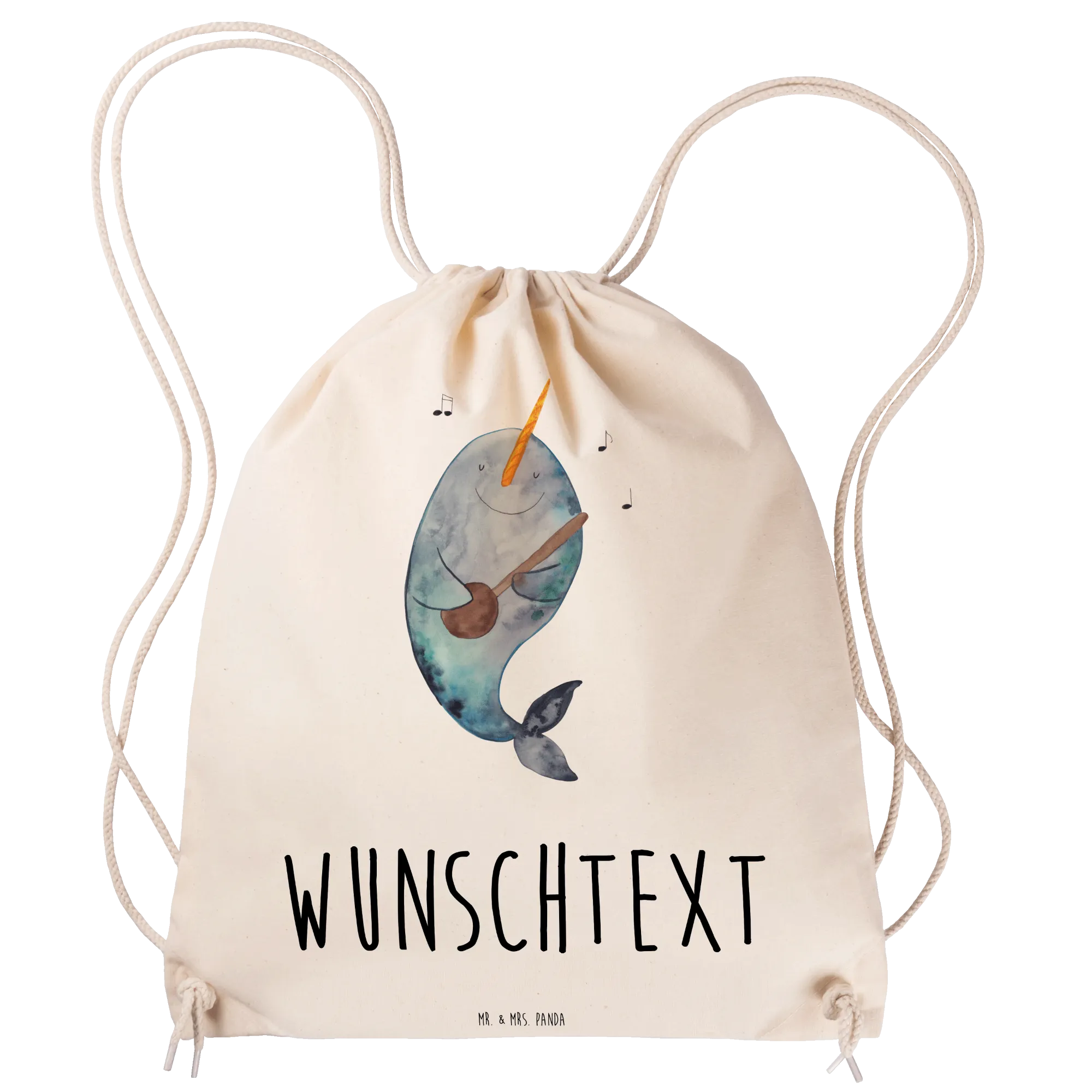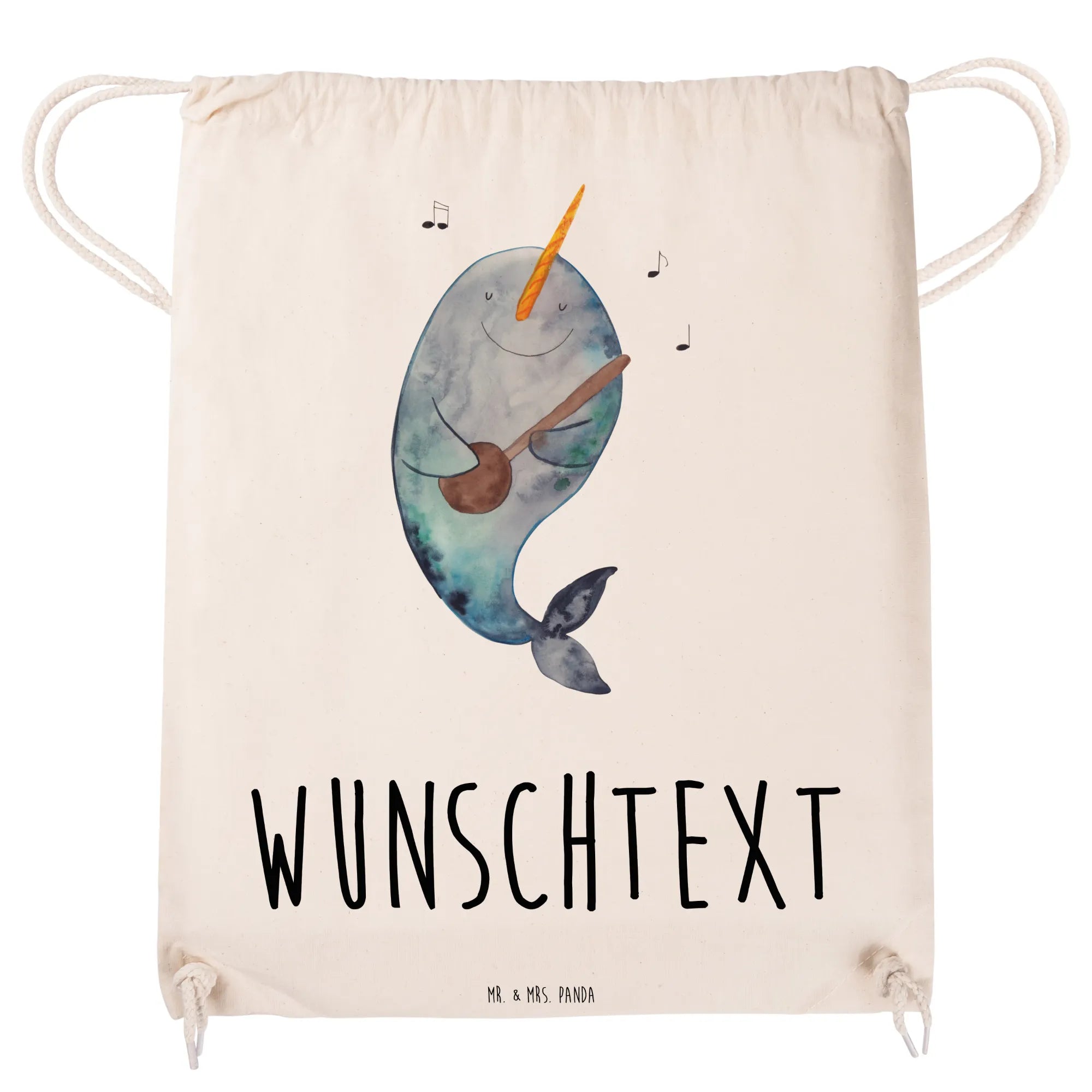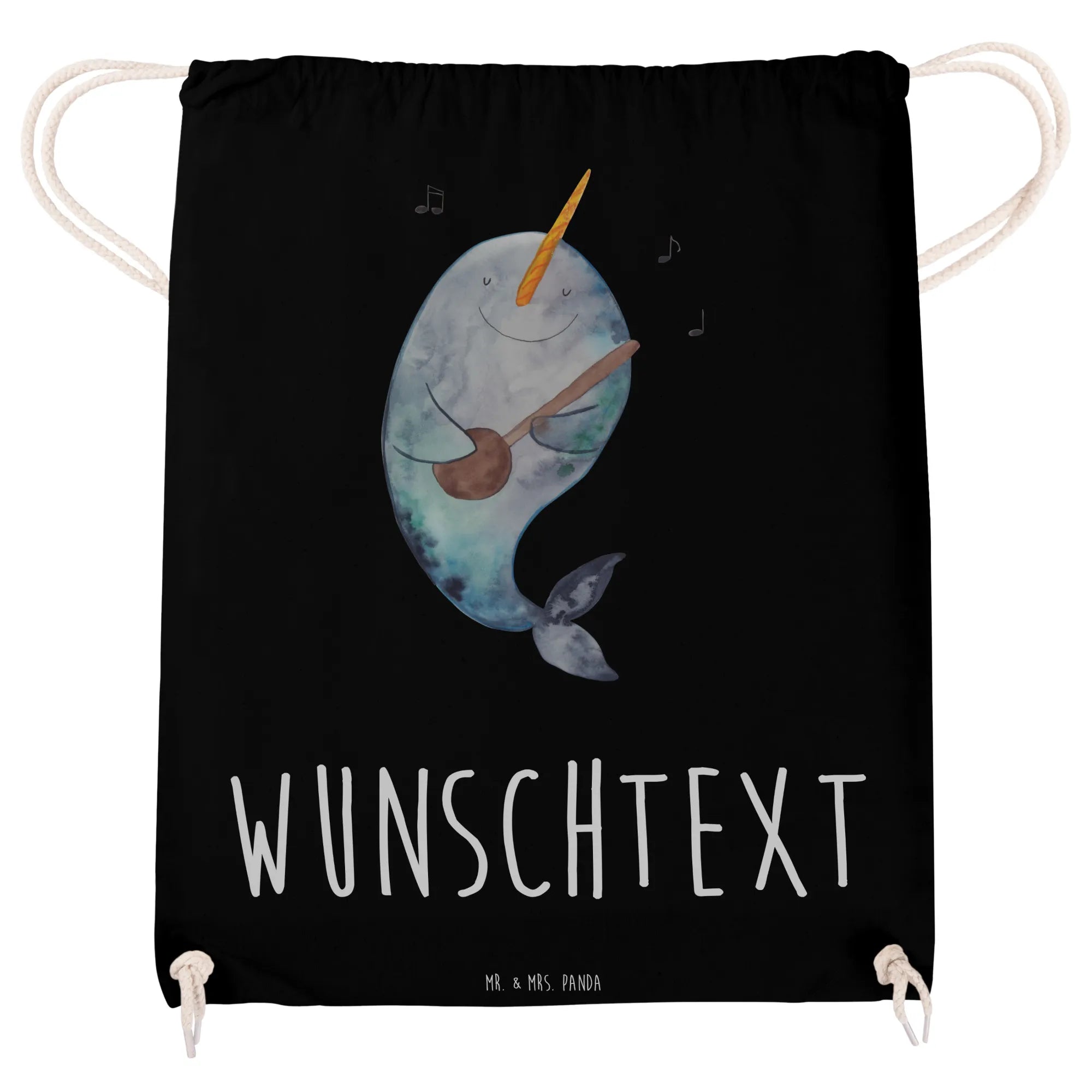 Der Narwal, spielend mit seiner Gitarre und umgeben von musikalischen Noten, bringt Freude in jeden Alltag. Ob für den Sport, für das Festival oder einfach als stylischer Begleiter im Alltag, dieser Beutel ist vielseitig einsetzbar.