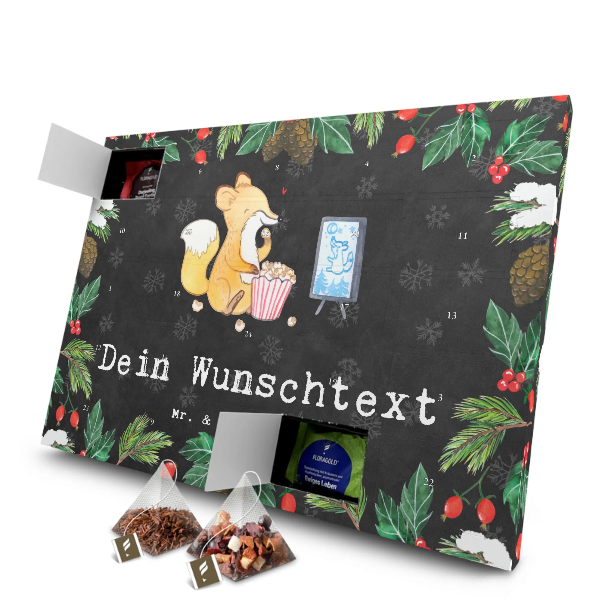 Personalisierter Tee Adventskalender Fuchs Filme gucken - Kreidetafel