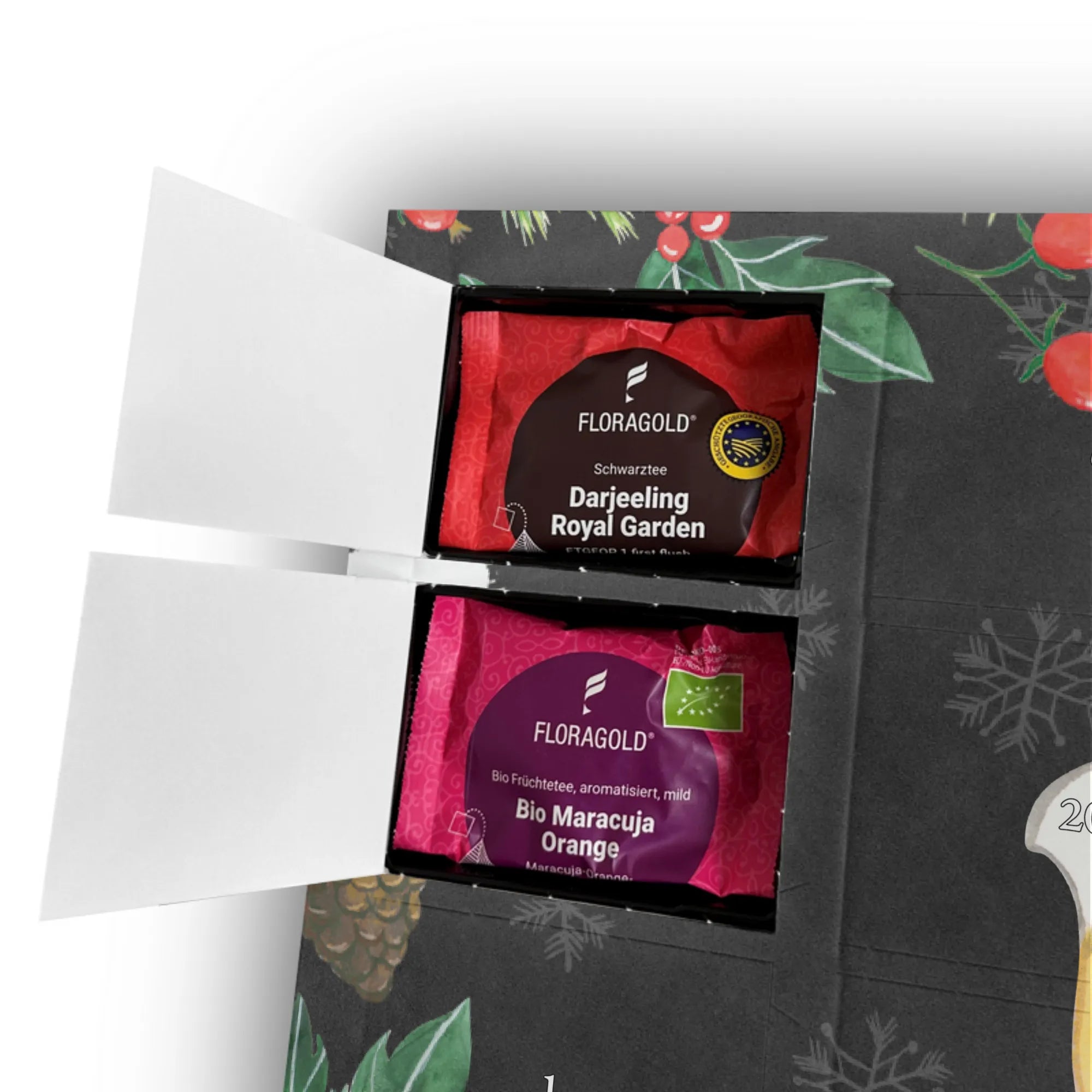 Schenk Vorfreude im Doppelpack: Personalisierten Tee-Kalender bestellen und 24 Tage voller Genuss und liebevoller Botschaften verschenken.