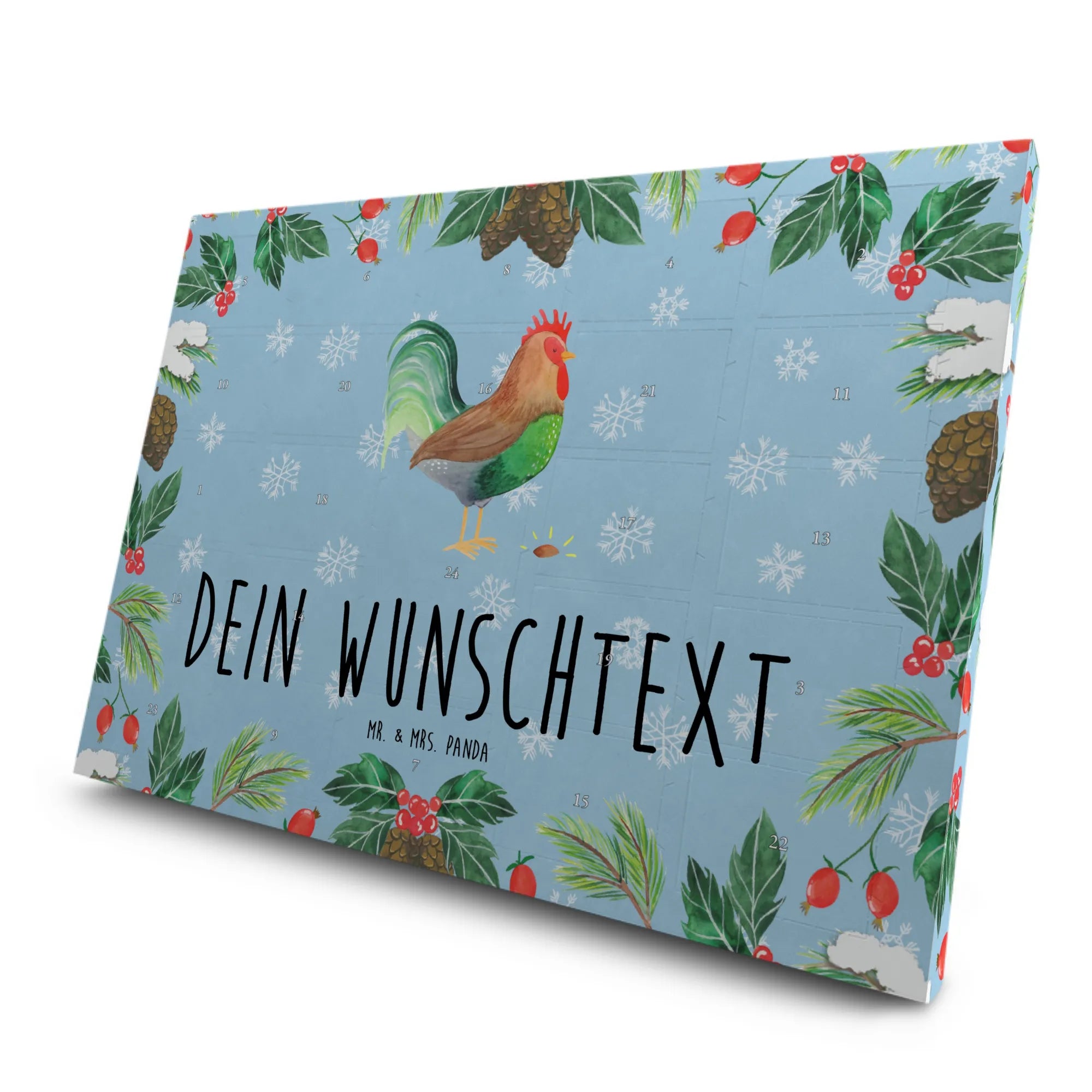 Der personalisierte Tee Adventskalender "Hahn mit Korn" von Mr. & Mrs. Panda ist das perfekte Geschenk für Teeliebhaber und Naturliebhaber gleichermaßen. Er steckt voller liebevoller Details und motiviert durch seinen inspirierenden Spruch: "Wenn du traurig bist, denk daran: wenn ein Hahn ein besonders prächtiges Korn findet, holt er seine Lieblingshenne und schenkt es ihr großzügig. Er ist echt ein feiner Kerl." Diese liebevoll gestaltete Box bringt nicht nur Adventsfreude, sondern auch die fröhliche Atmosphäre eines Bauernhofs in jedes Zuhause.