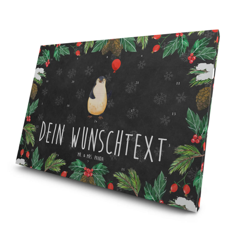 Personalisierter Tee Adventskalender Pinguin Luftballon - Kreidetafel
