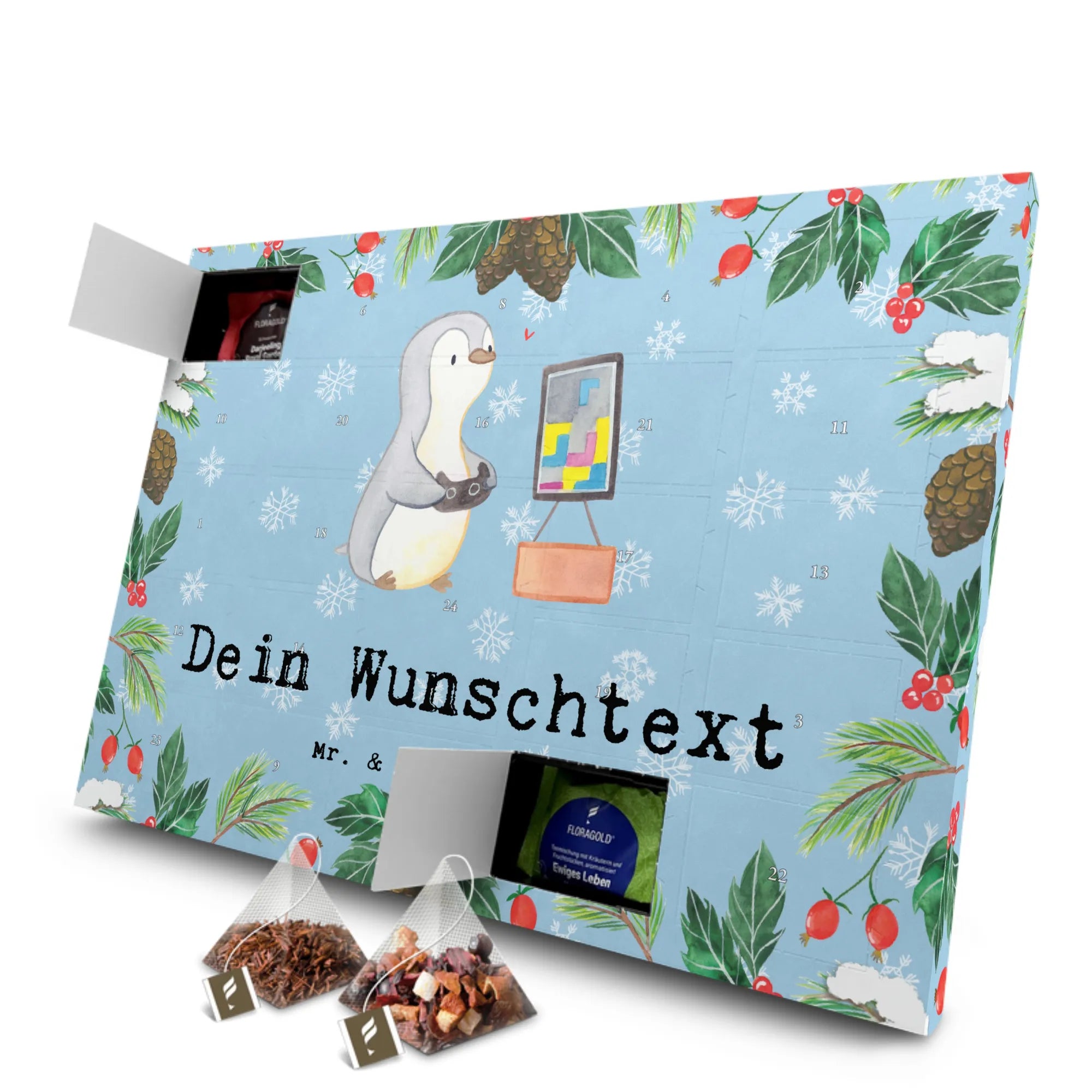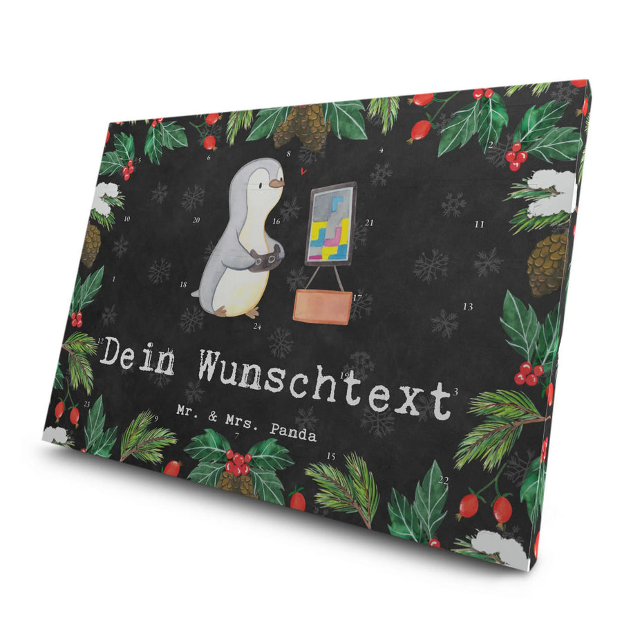 Personalisierter Tee Adventskalender Pinguin Zocken - Kreidetafel