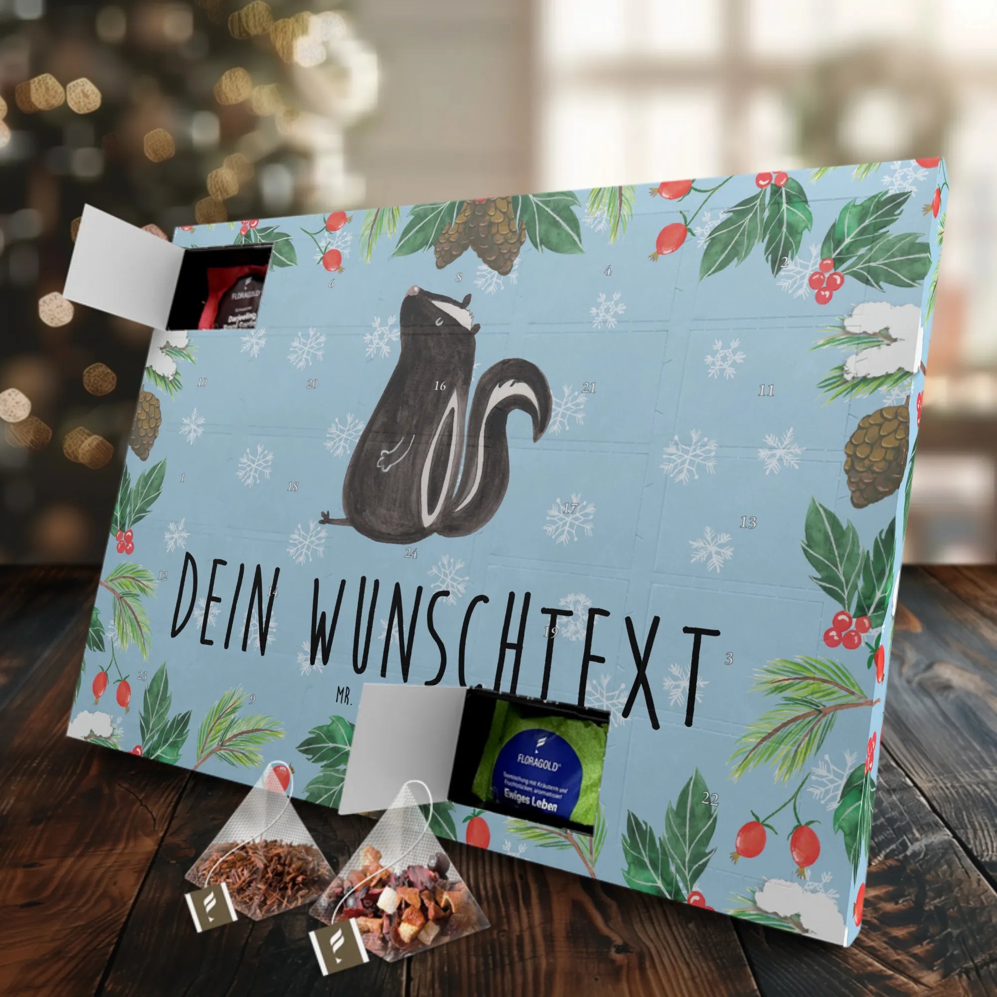 Personalisierter Tee Adventskalender Stinktier Sitzen - Eisblau
