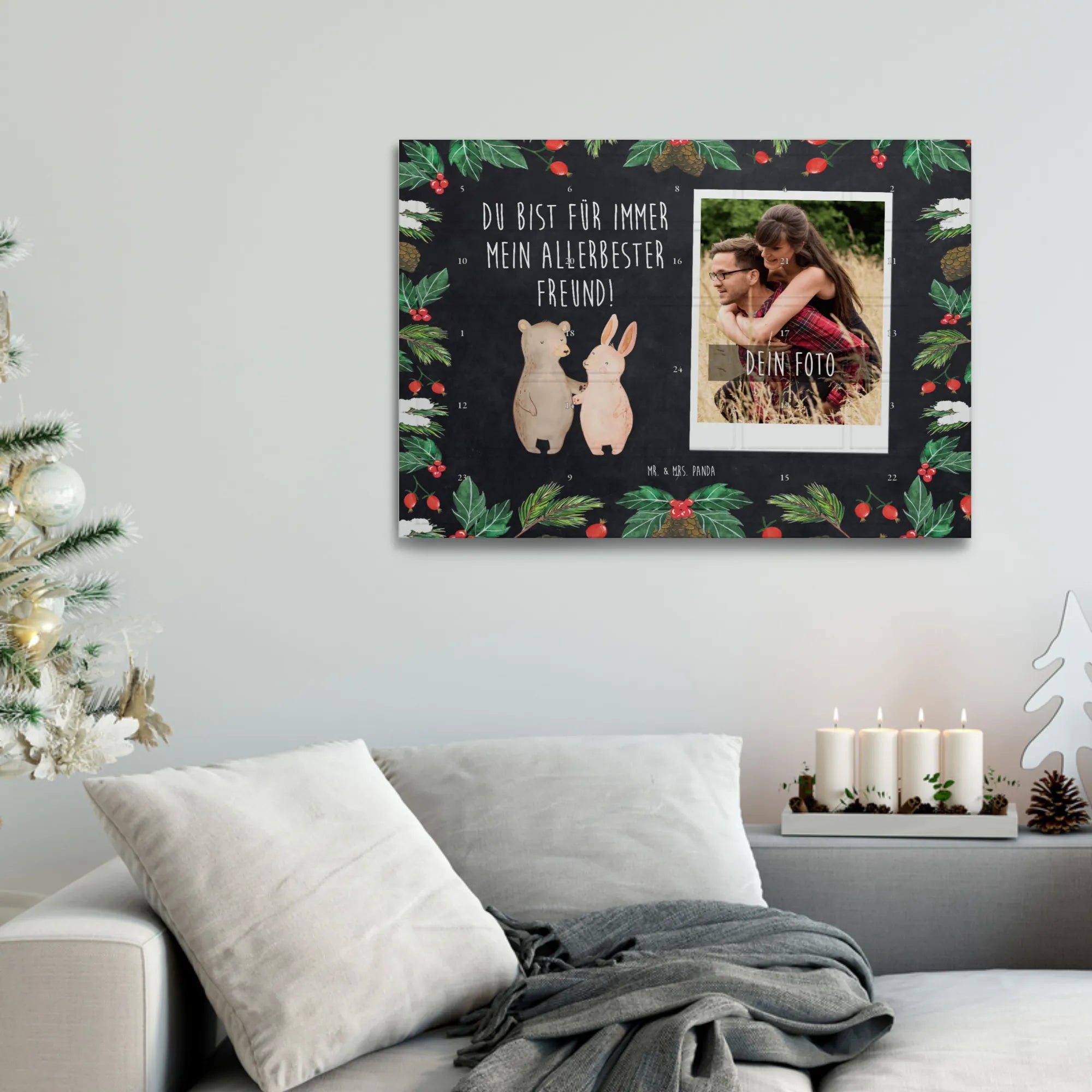Personalisierter Tee Foto Adventskalender Bär und Hase Umarmen – Mr. & Mrs. Panda