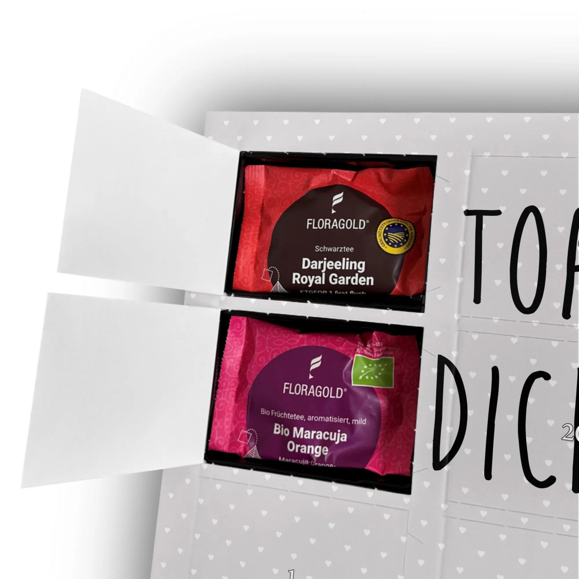 Stell dir vor, wie deine Liebsten jeden Morgen ein neues Türchen öffnen und einen von 24 verschiedenen, hochwertigen Teesorten entdecken: vom fruchtigen Früchtetee über klassischen Schwarztee bis hin zu erfrischenden Kräutertees. Der Kalender ist nicht nur ein Genuss für den Gaumen, sondern auch ein echter Hingucker.