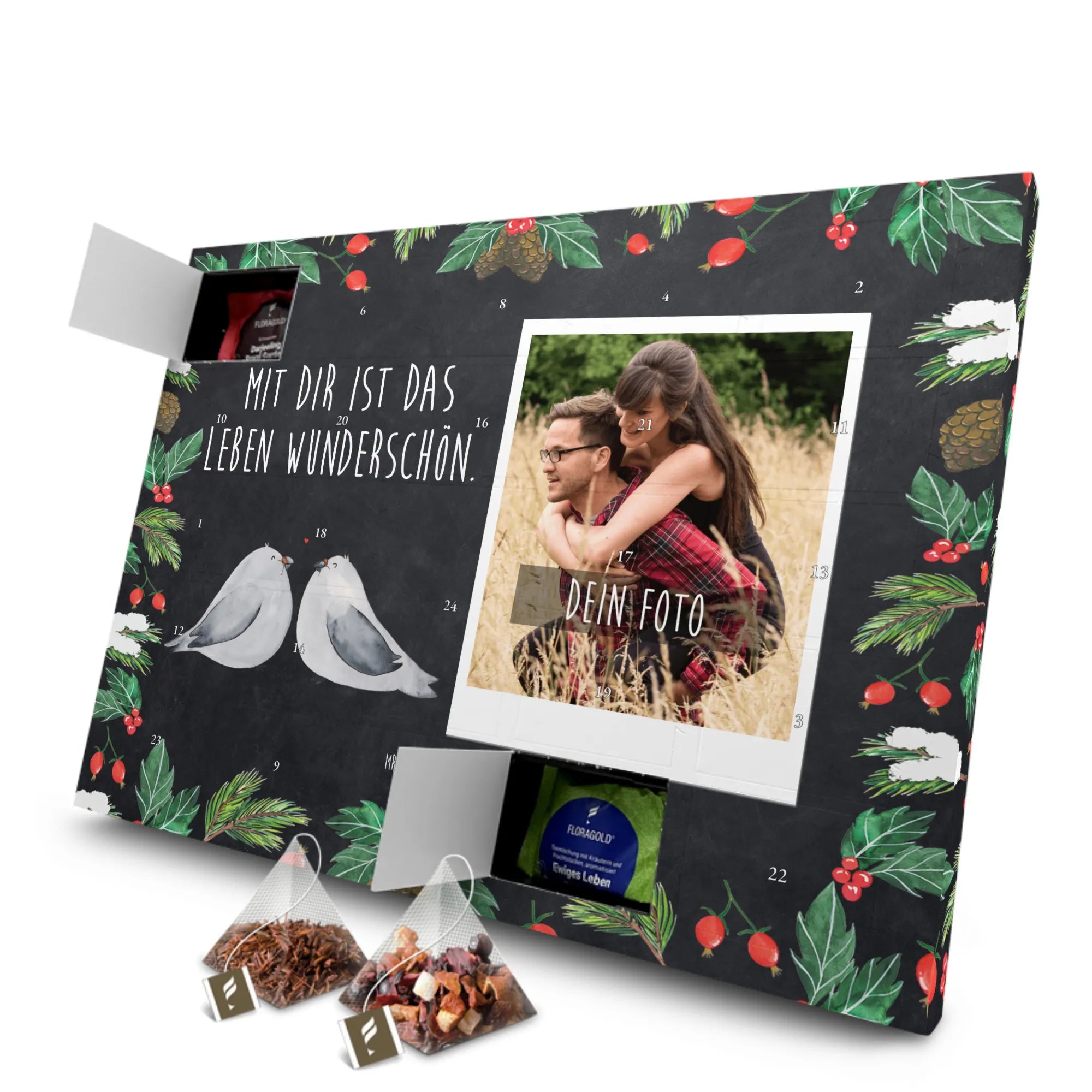 Personalisierter Tee Foto Adventskalender Turteltauben Liebe – Mr. & Mrs. Panda