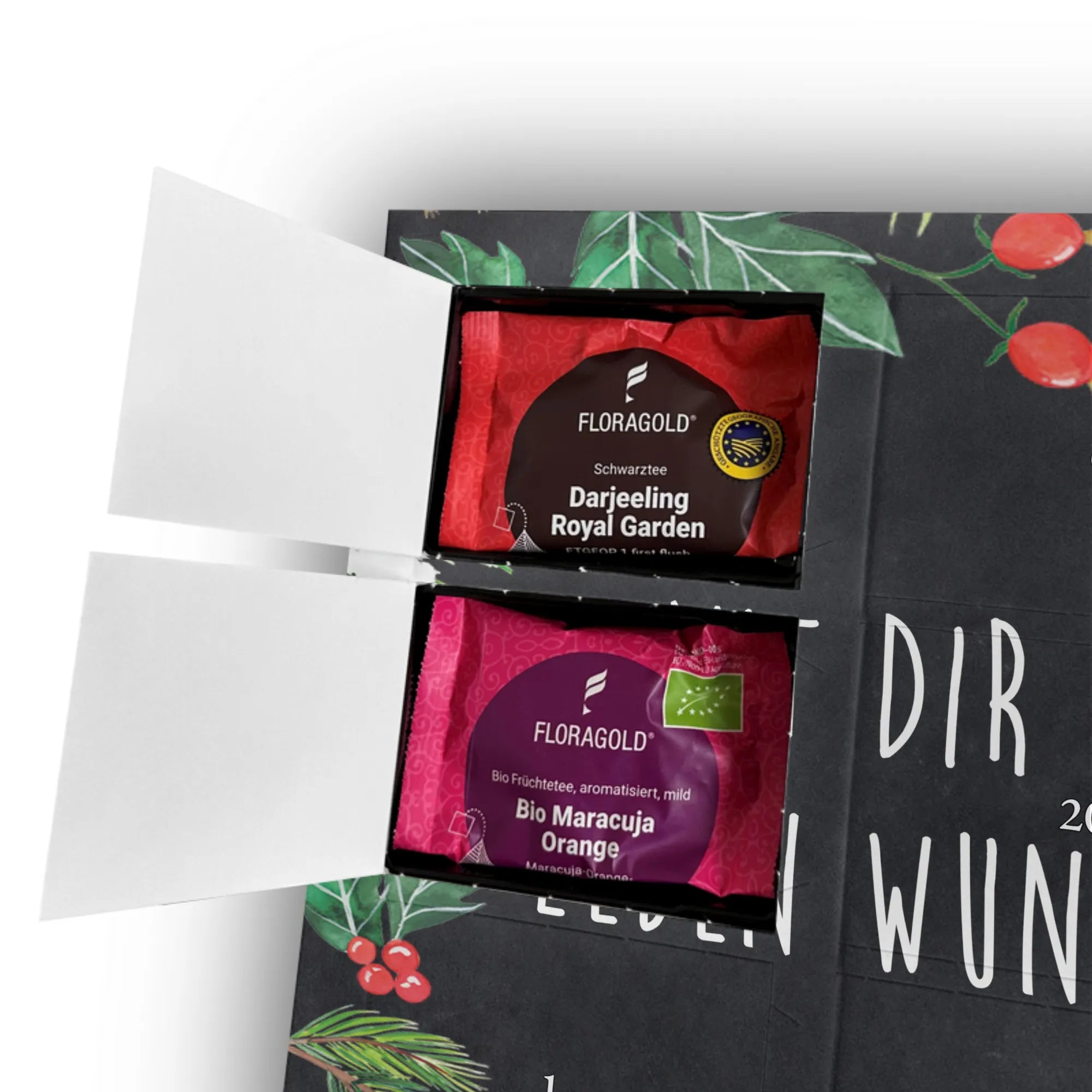 Er ist nicht nur ein echter Augenschmaus, sondern auch ein originelles Geschenk, das jedes Herz höher schlagen lässt. In 24 liebevoll gestalteten Türchen warten jeweils hochwertige Teesorten auf dich, die dazu einladen, die besinnliche Zeit mit deinem Partner oder deiner Partnerin gemeinsam zu genießen. Ob als Geschenk zum Jahrestag, Hochzeitstag oder einfach nur als Überraschung für den liebsten Menschen – dieser Kalender ist ein liebevoller Liebesbeweis.