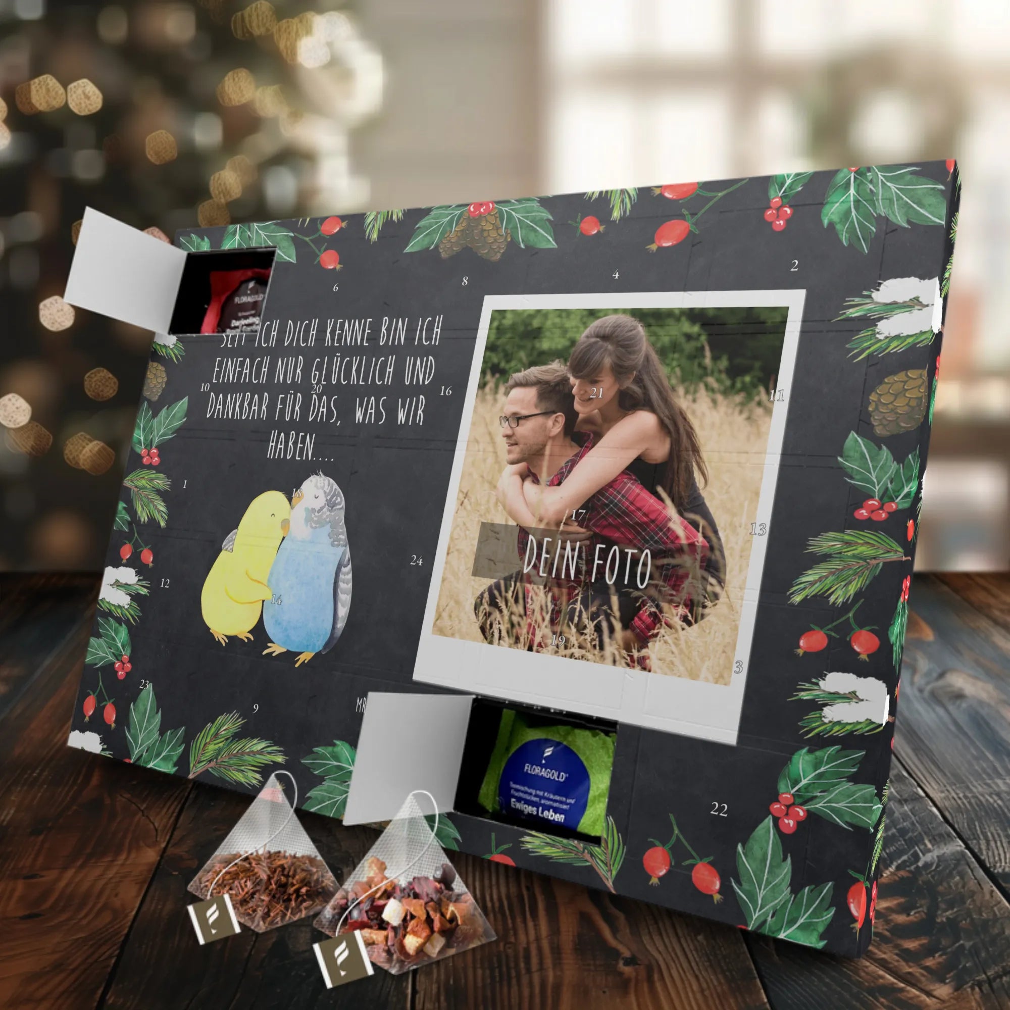 Personalisierter Tee Foto Adventskalender Wellensittich Liebe – Mr. & Mrs. Panda