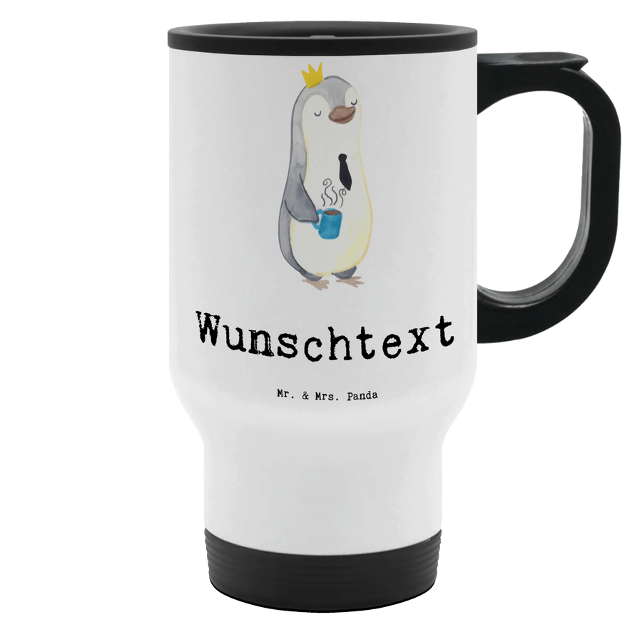 Der personalisierte Thermobecher "Abteilungsleiter mit Herz" von Mr. & Mrs. Panda ist das perfekte Geschenk für alle Abteilungsleiter, Teamleiter und Führungskräfte. Dieser einzigartige Thermobecher ist nicht nur praktisch, sondern auch liebevoll gestaltet. Mit einem süßen Pinguin, der eine Krone trägt und eine Kaffeetasse in der Hand hält, bringt er ein Lächeln in jede Kaffeepause.
