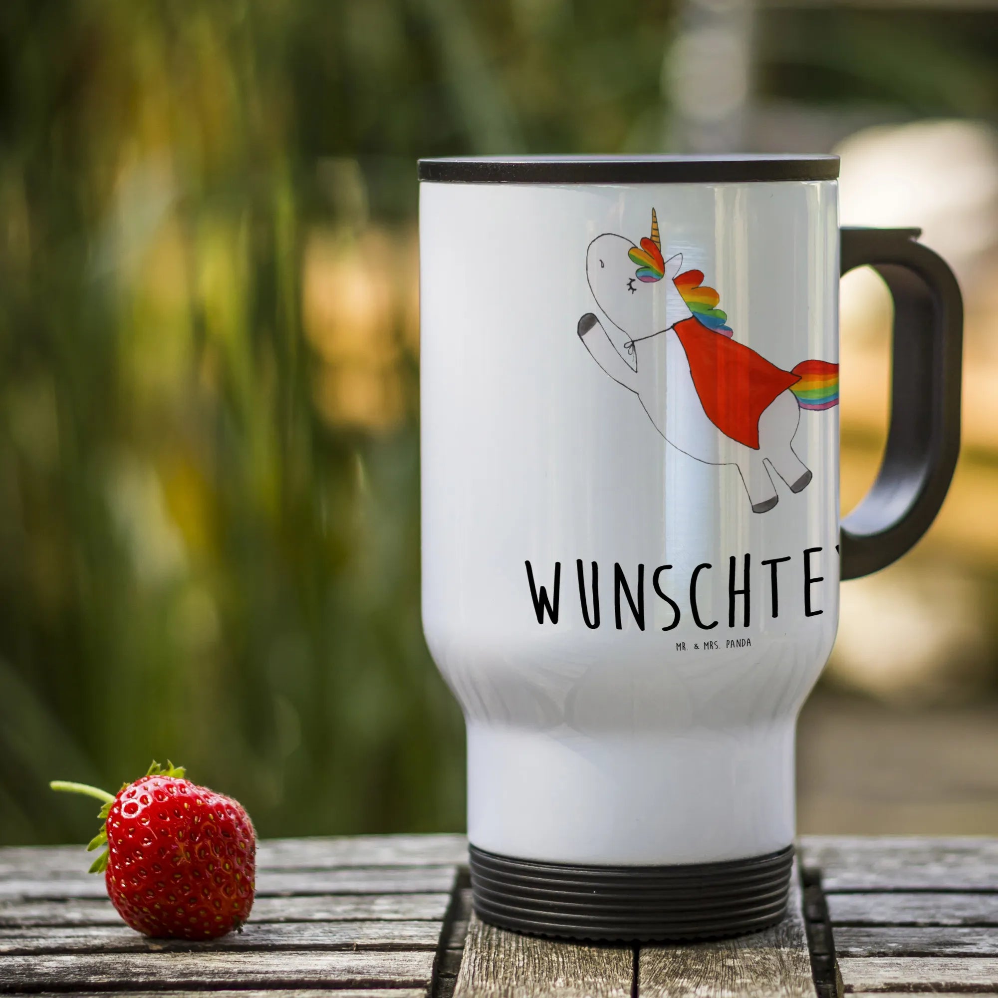 Der personalisierte Thermobecher „Einhorn Super“ von Mr. & Mrs. Panda ist das perfekte Geschenk für alle, die einen Hauch von Magie in ihren Alltag bringen möchten.