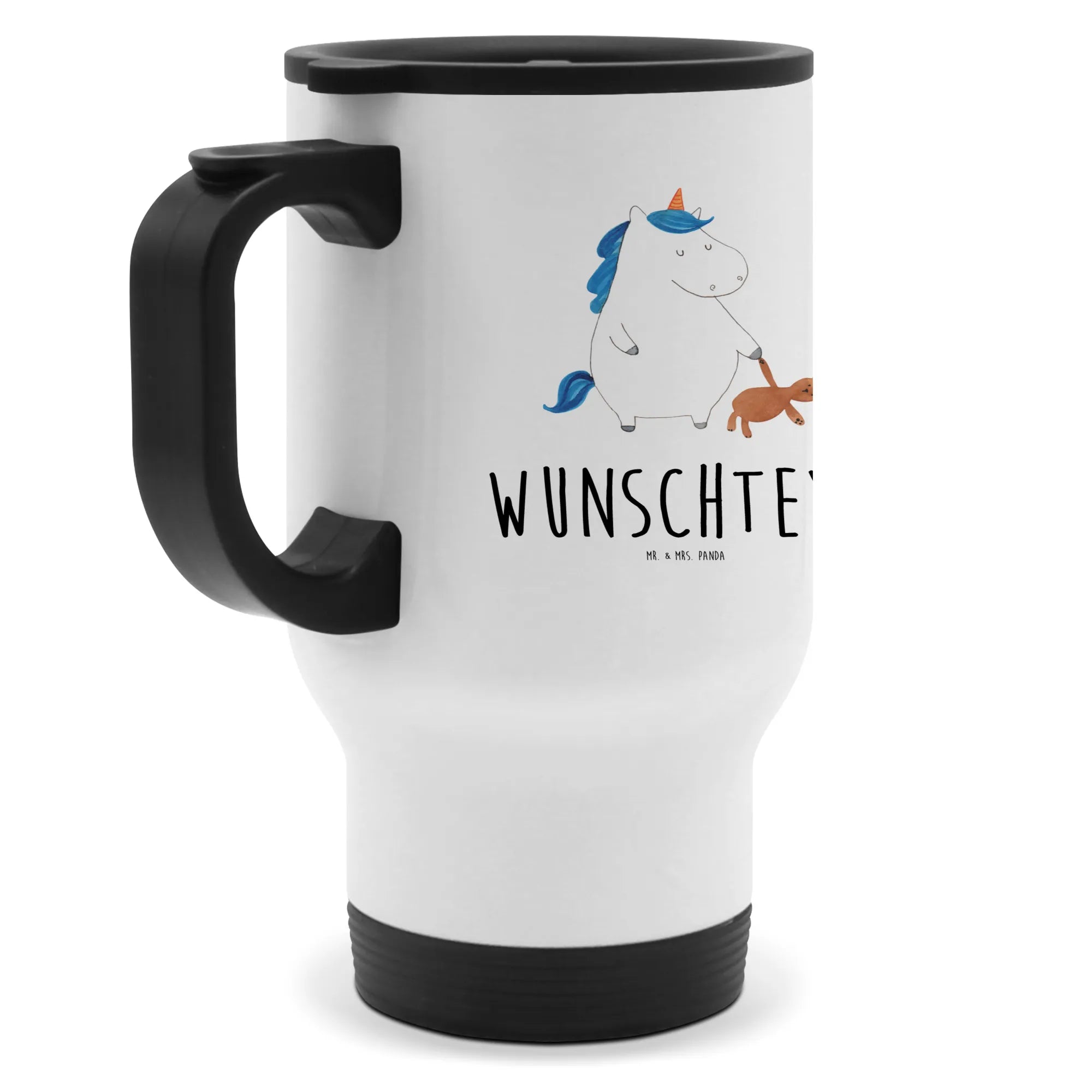 Entdecke den zauberhaften und praktischen personalisierten Thermobecher mit dem süßen Einhorn Teddy Design aus der Einhorn-Kollektion von Mr. & Mrs. Panda!