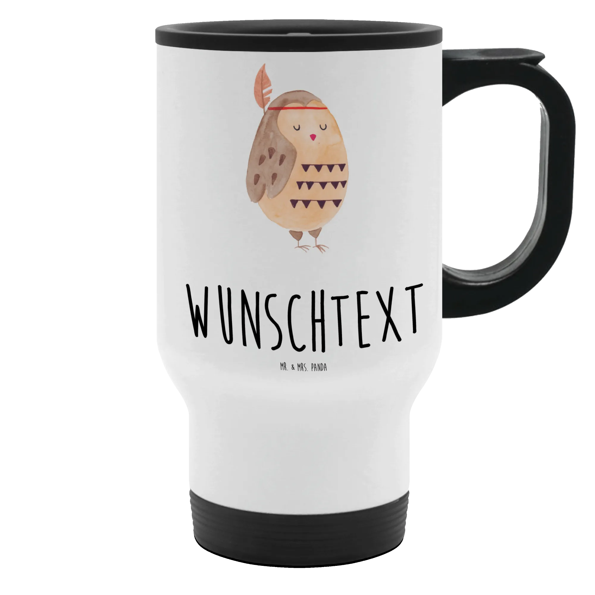 Personalisierter Thermobecher Eule Federschmuck