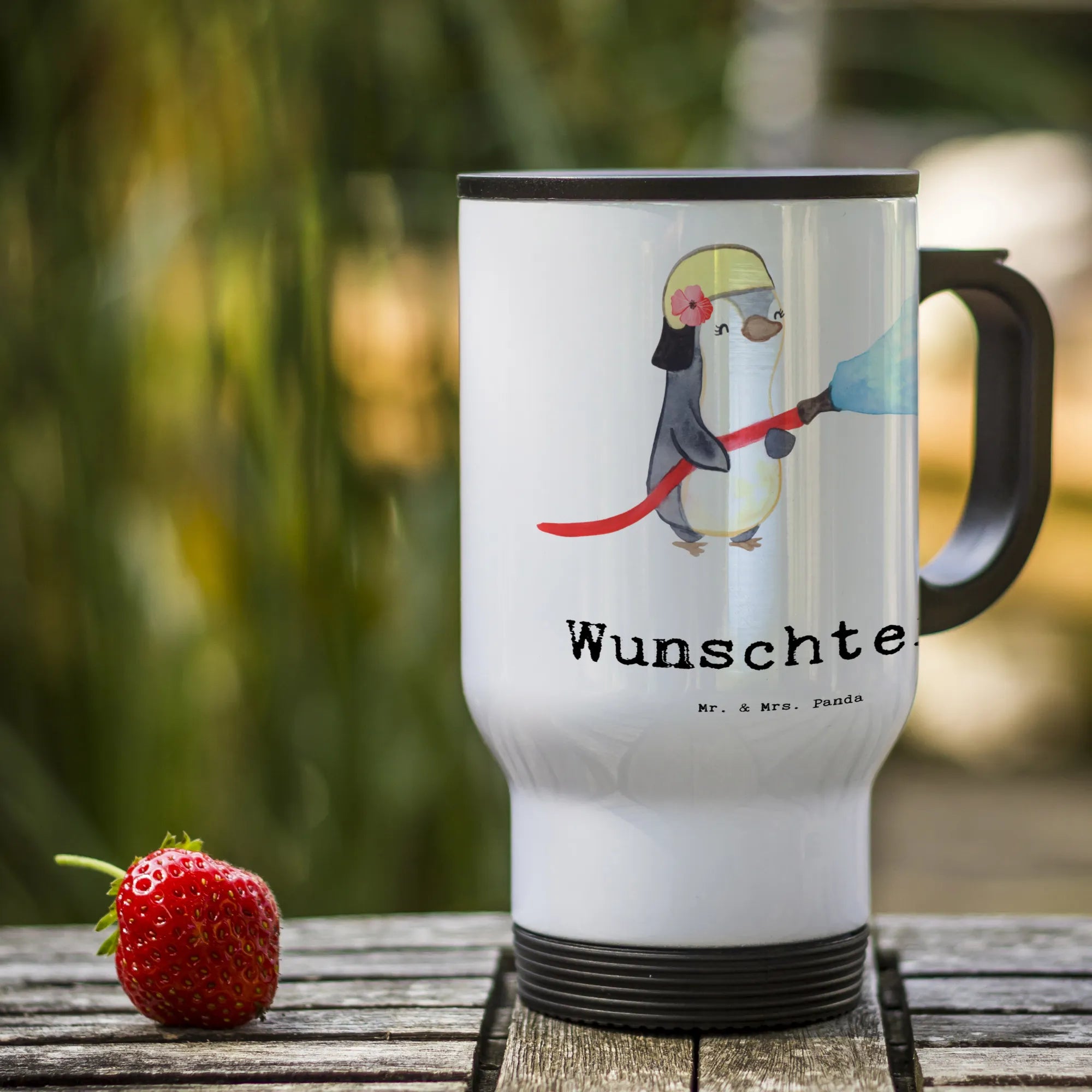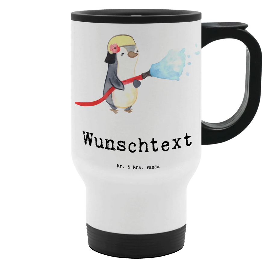 Der personalisierte Thermobecher Feuerwehrfrau mit Herz von Mr. & Mrs. Panda ist das perfekte Geschenk für Feuerwehrfrauen und -männer, die stolz auf ihren Beruf sind. Jeder Schluck aus diesem besonderen Becher wird zur Hommage an die Leidenschaft und den Mut, den diese außergewöhnlichen Menschen täglich zeigen. Mit seinem einzigartigen Design, das eine liebevoll gezeichnete Feuerwehrfrau mit Herz darstellt, bringt dieser Thermobecher nicht nur Freude, sondern auch eine persönliche Note in jeden Tag.