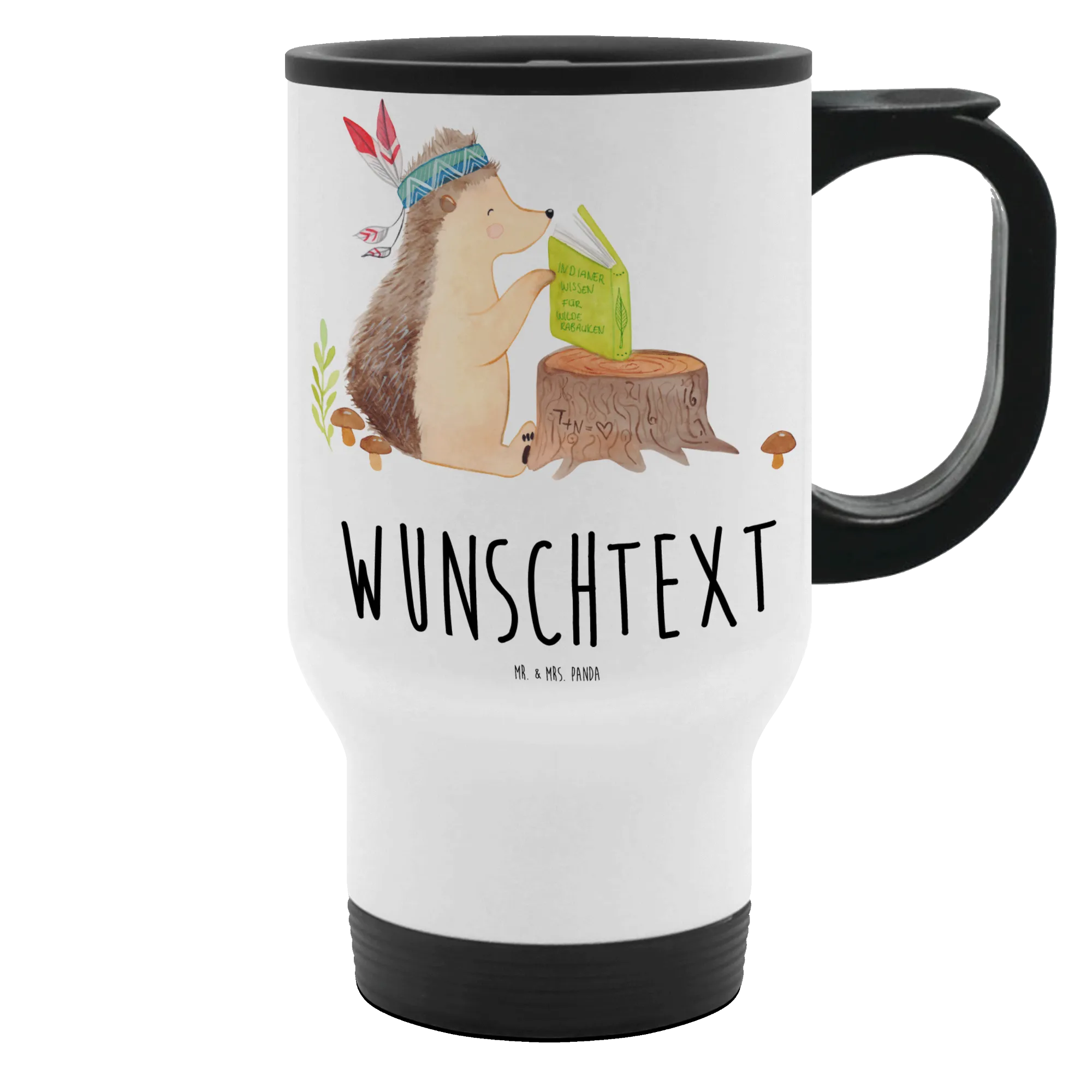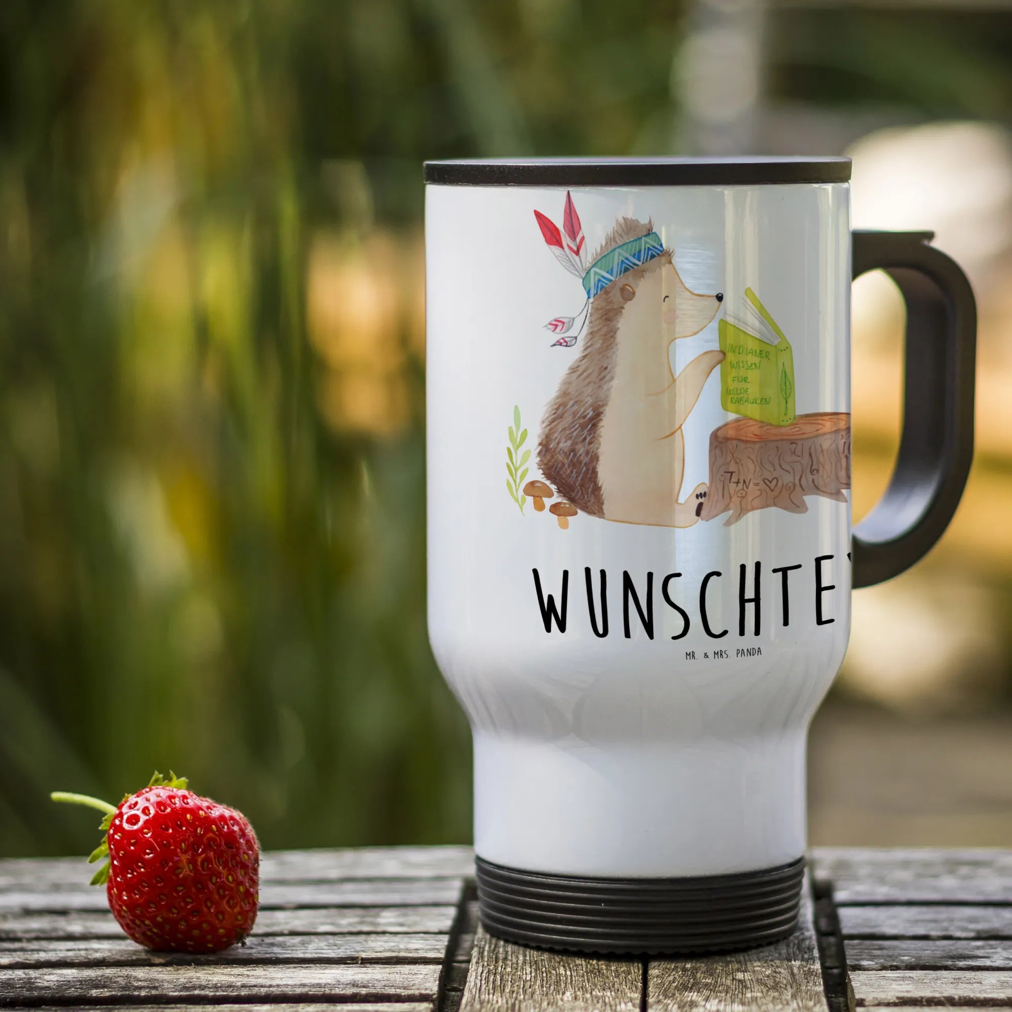 Entdecke den perfekten Begleiter für deine Abenteuer mit dem personalisierten Thermobecher "Igel Indianer" von Mr. & Mrs. Panda!