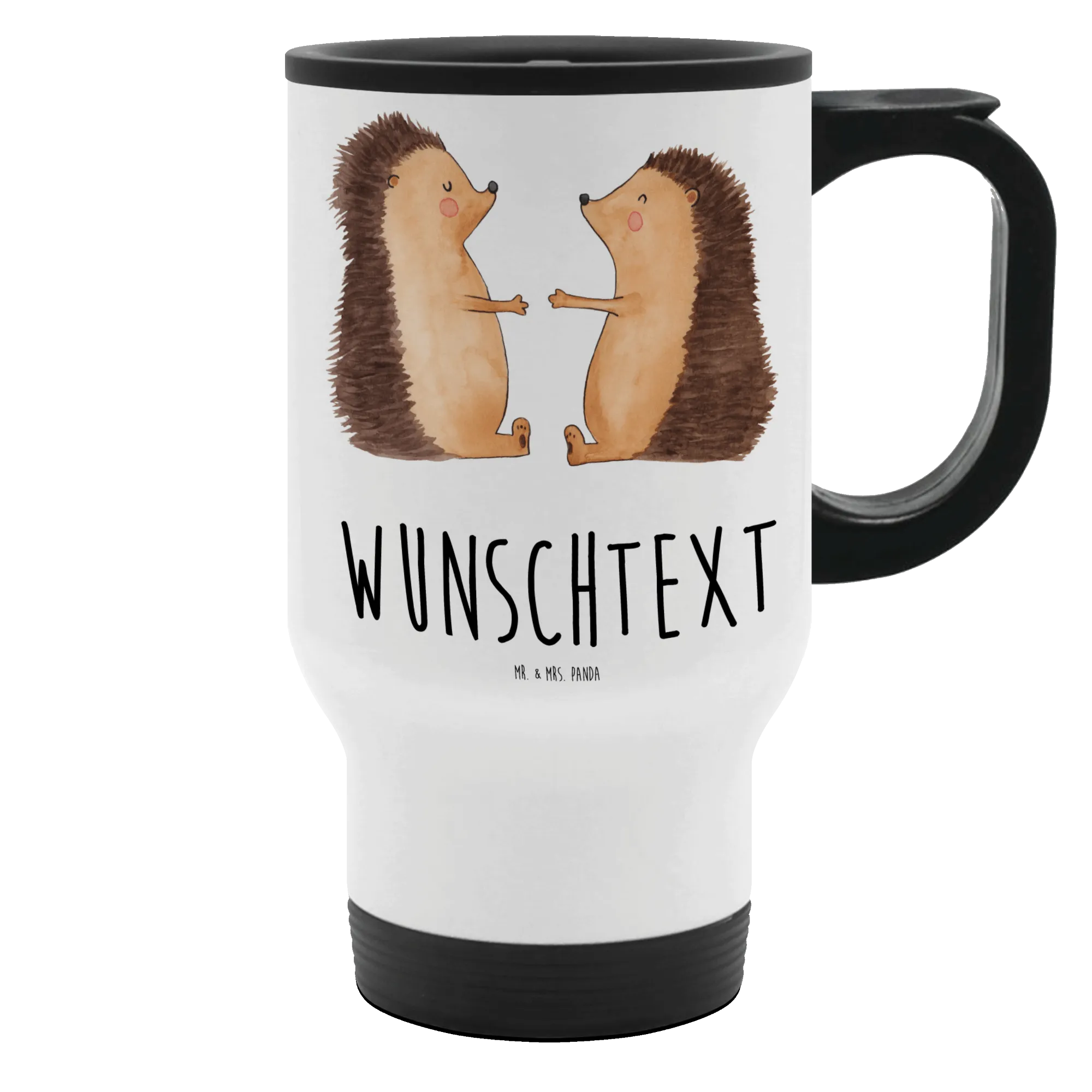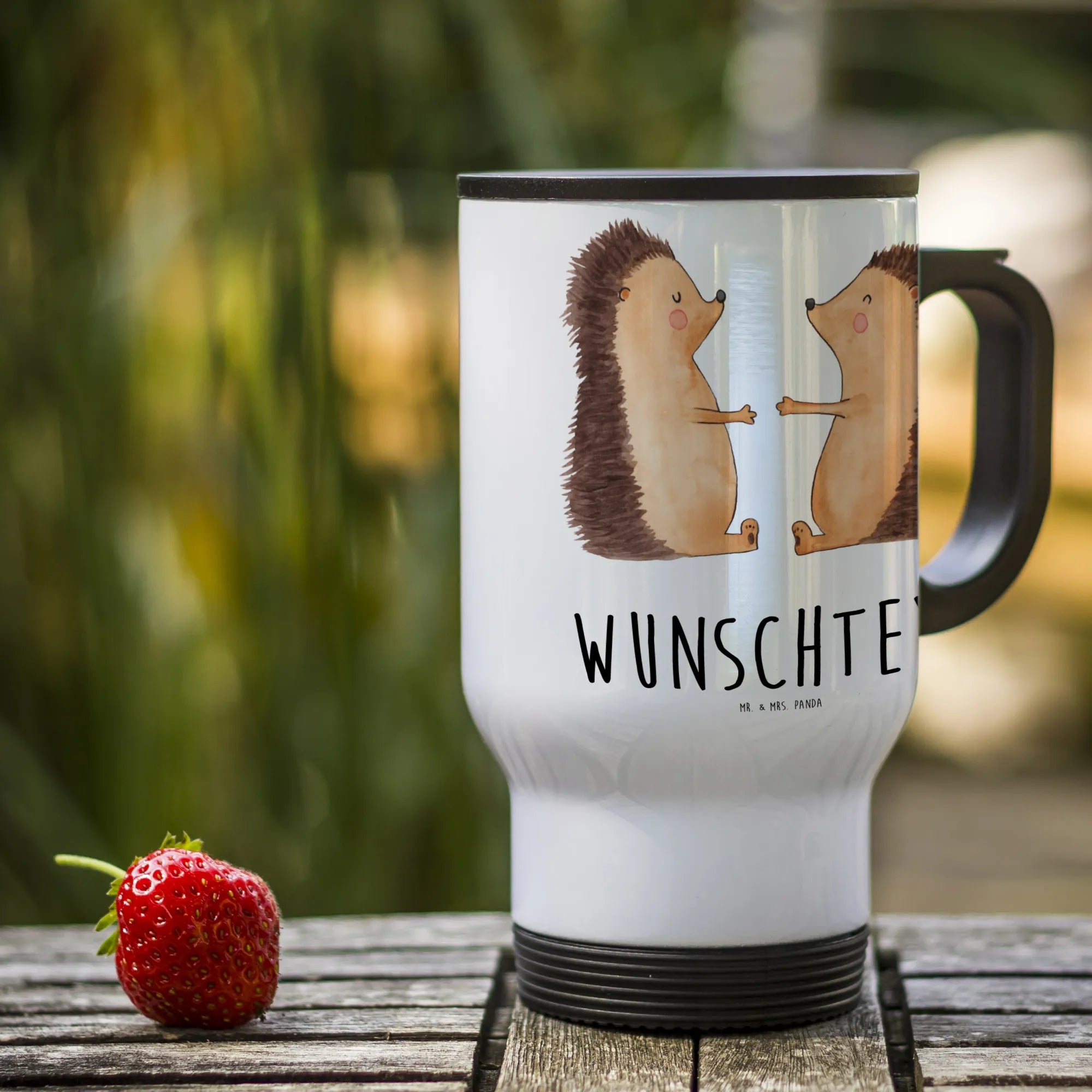 Der personalisierte Thermobecher "Igel Liebe" aus der Kollektion Liebe von Mr. & Mrs. Panda ist nicht nur ein praktischer Begleiter für heiße Getränke wie Kaffee oder Tee, sondern auch ein ganz besonderes Liebesgeschenk für deine/n Partner/in. Die handgemalten Igelchen auf dem Becher strahlen Zuneigung und Wärme aus und sind somit der perfekte Ausdruck deiner Gefühle.