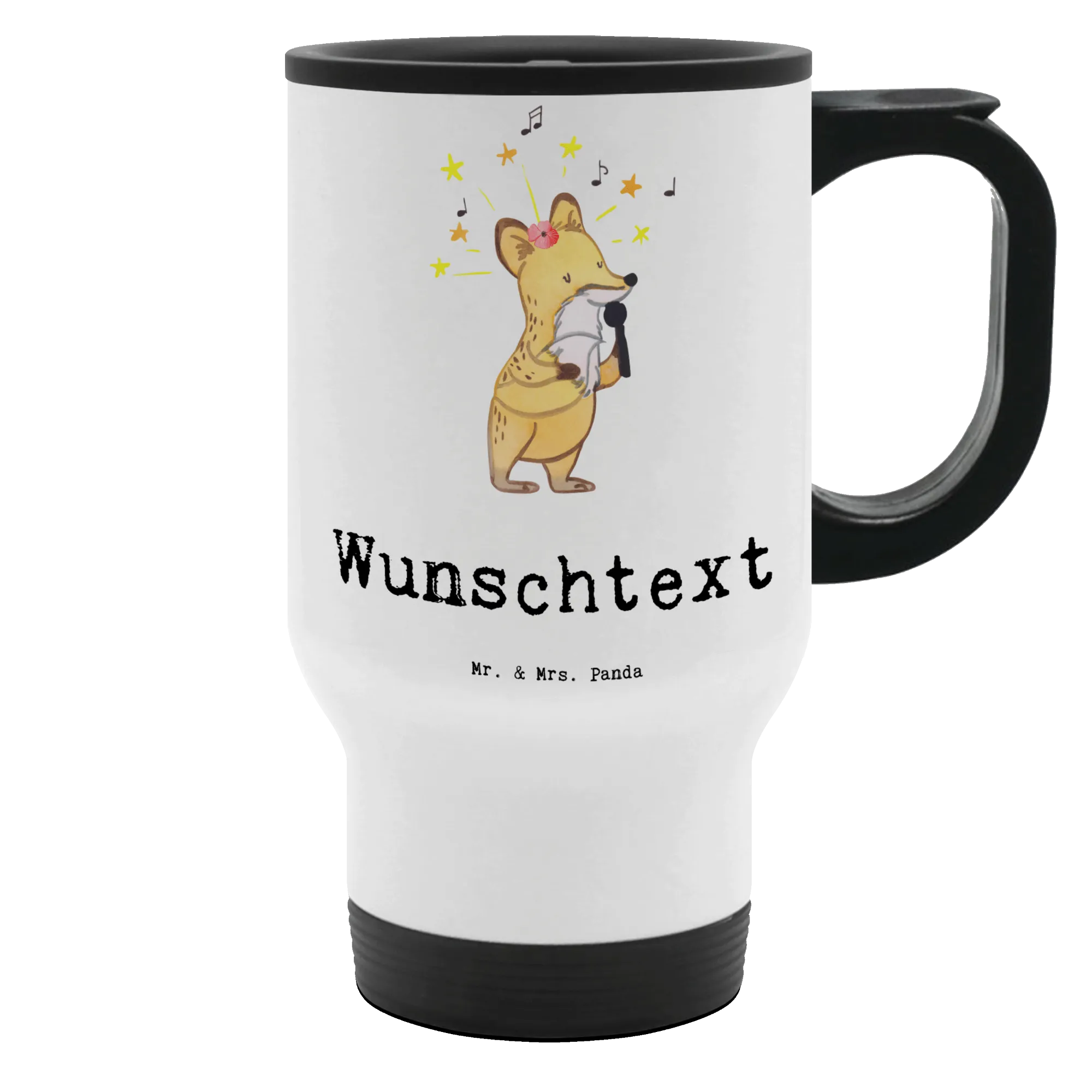 Seine süße Gestaltung zeigt einen bezaubernden Fuchs mit Mikrofon, der ein Lied singt, und darunter steht der humorvolle Spruch: "Du bist nur ein halber Mensch, wenn du keine Opernsängerin bist." Mit einem Wunschnamen lässt sich der Thermobecher noch persönlicher gestalten, sodass er nicht nur praktisch, sondern auch ein einzigartiges Erinnerungsstück wird.