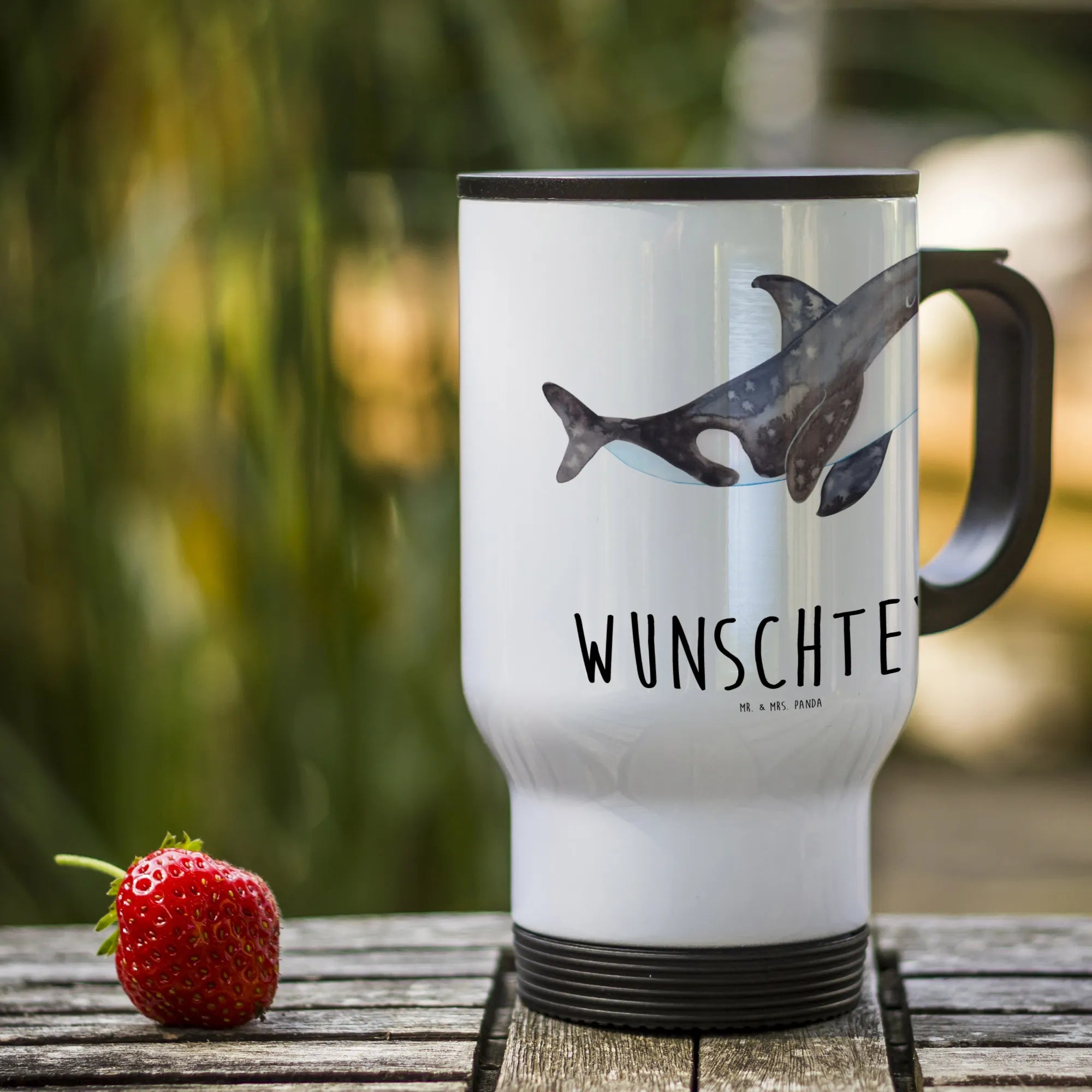 Die spezielle Gestaltung erlaubt es dir, diesen Becher mit deinem Wunschname oder Wunschtext zu personalisieren, damit er wirklich zu dir passt. So wird jede Kaffeepause zum besonderen Erlebnis! Der Orca auf deinem Becher erinnert dich daran, die Herausforderungen des Lebens anzugehen: "Wage den Sprung ins kalte Wasser und tauche in ein Meer voller Möglichkeiten!"