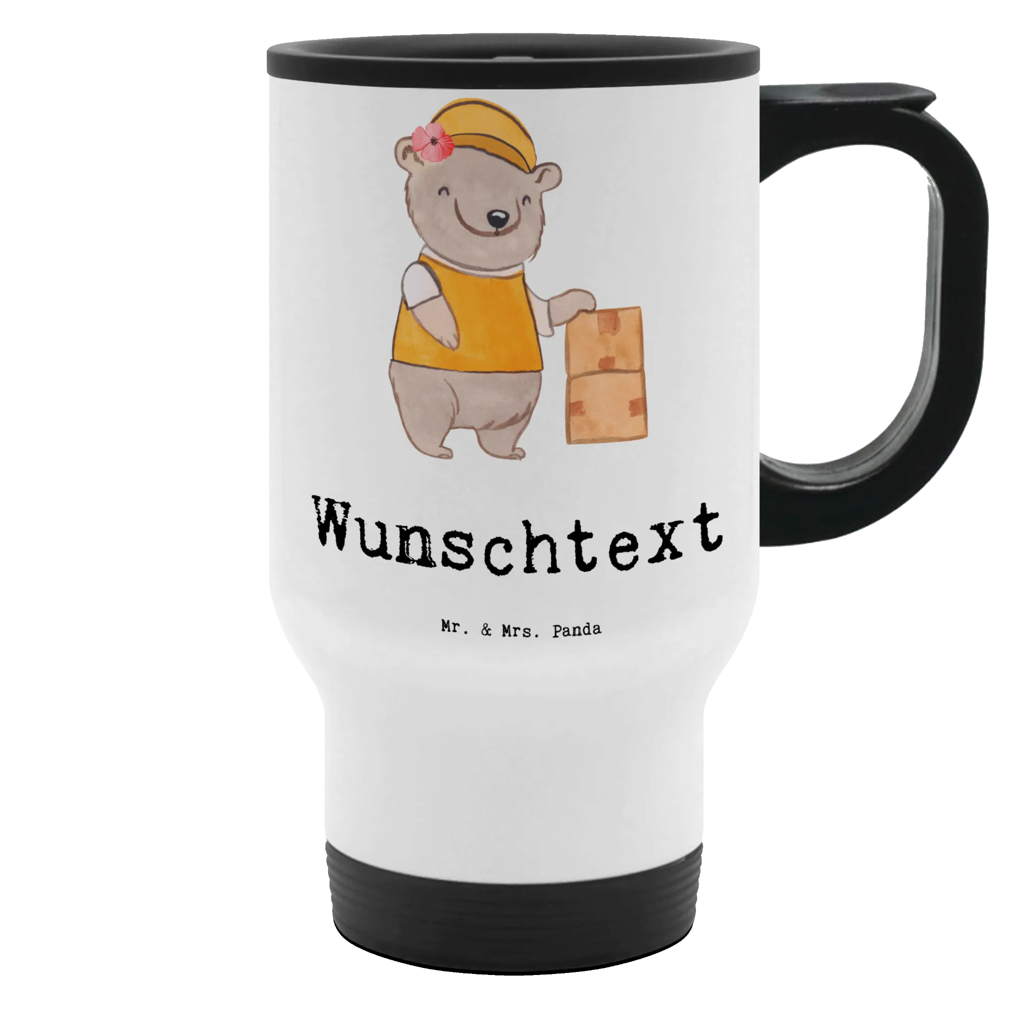 Personalisierter Thermobecher Paketzustellerin mit Herz