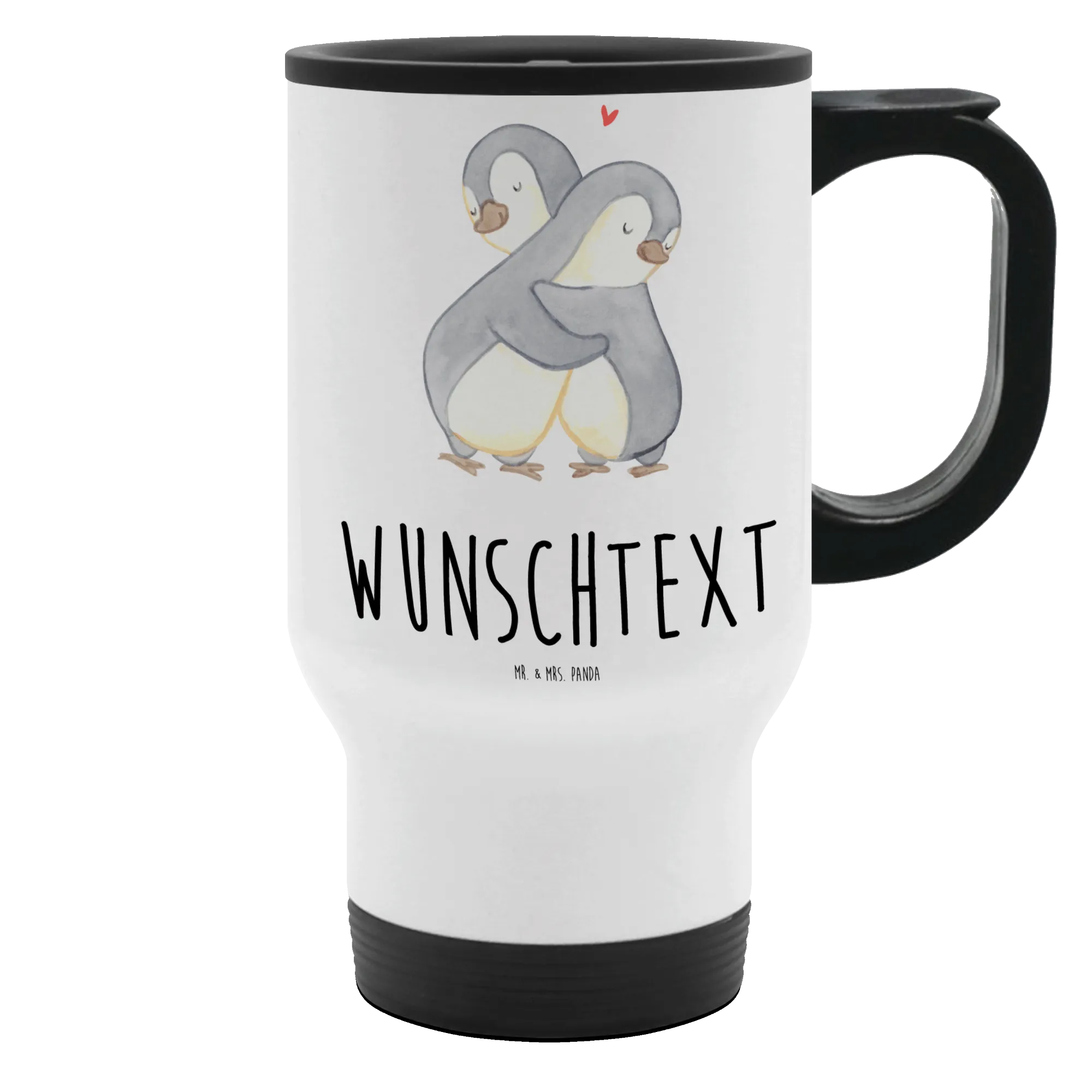 Entdecke unseren einzigartigen personalisierten Thermobecher "Pinguine Kuscheln" aus der Kollektion Liebe von Mr. & Mrs. Panda!