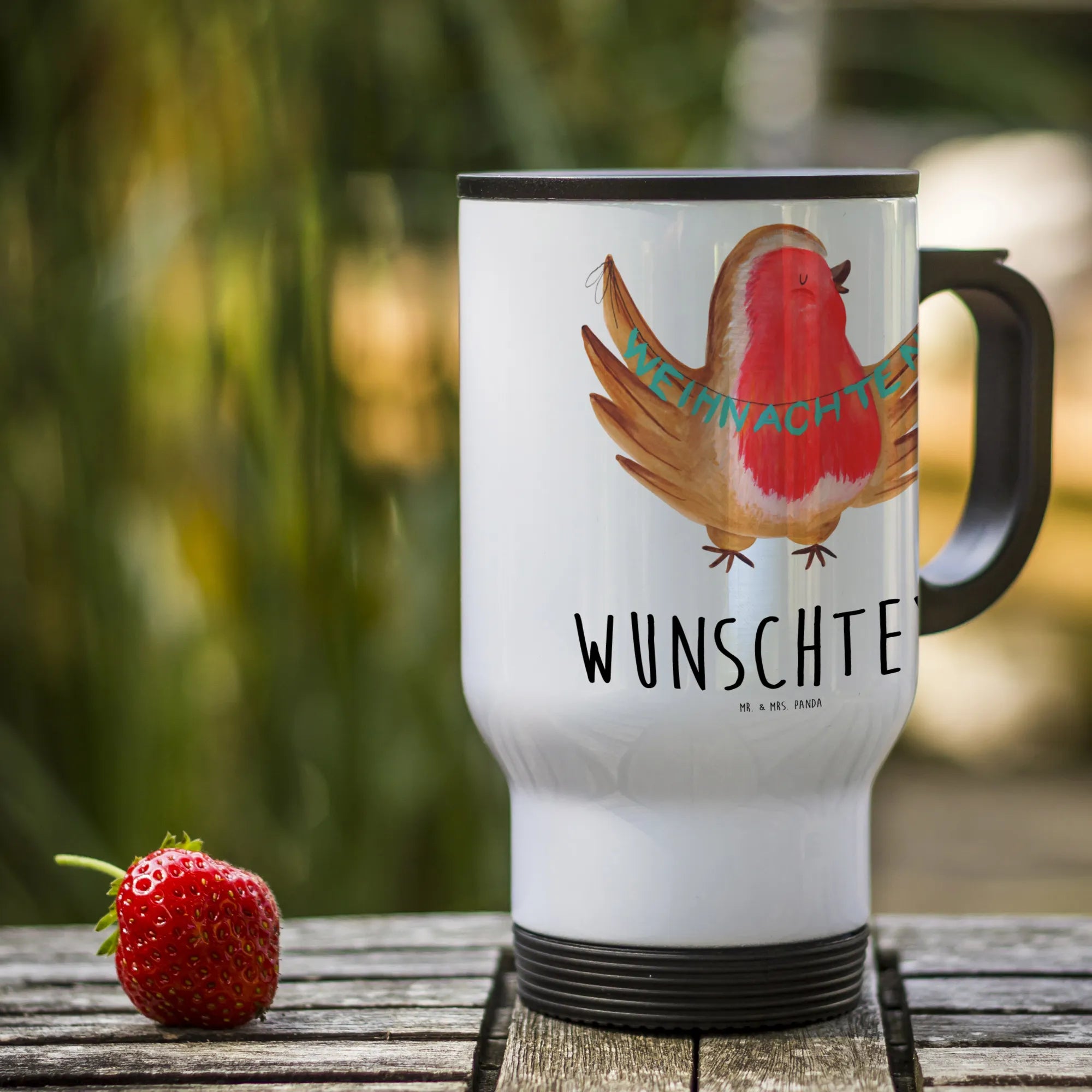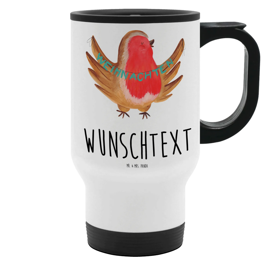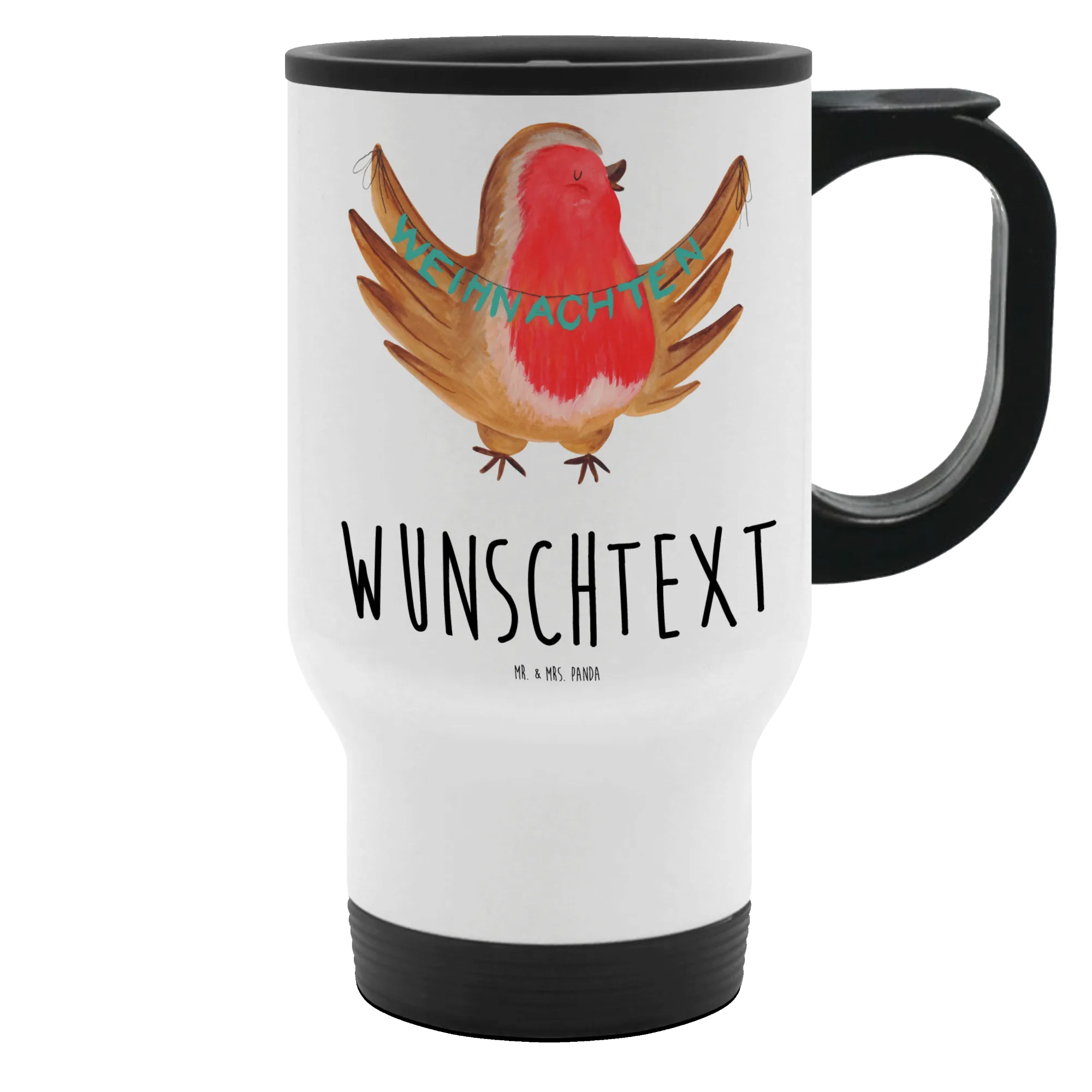Personalisierter Thermobecher Rotkehlchen Weihnachten