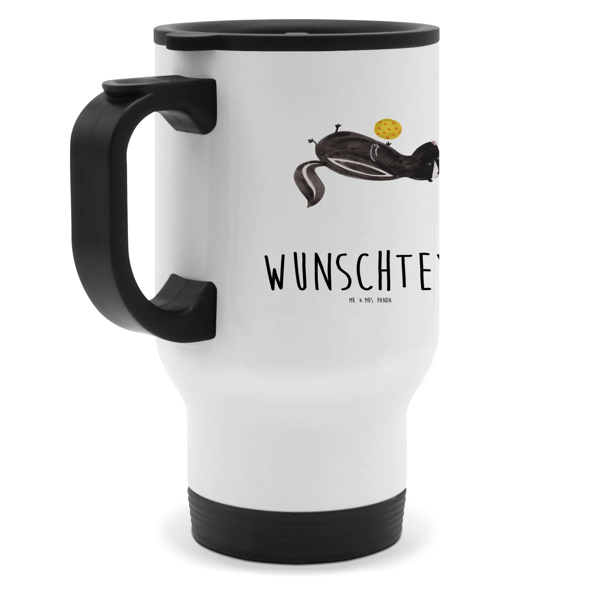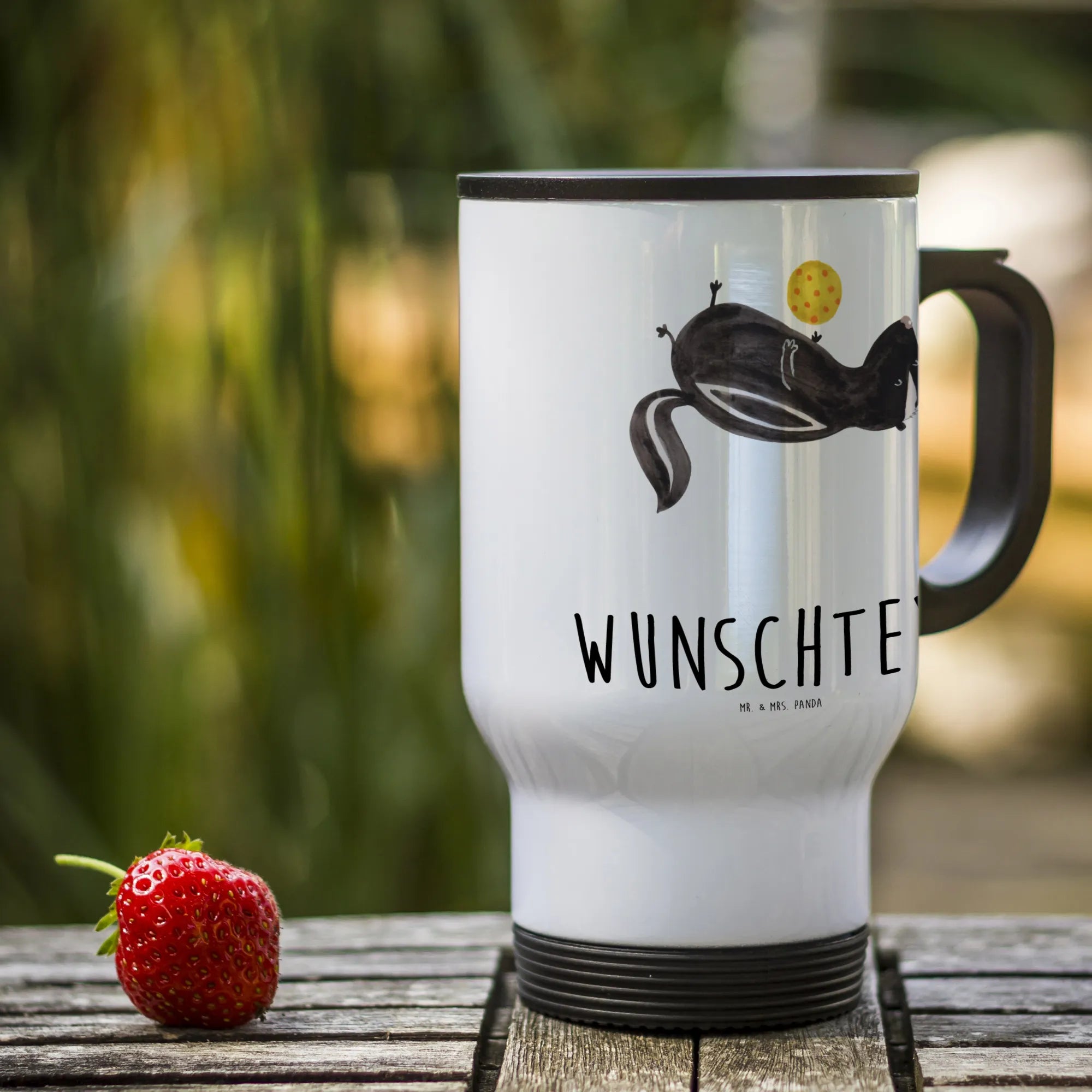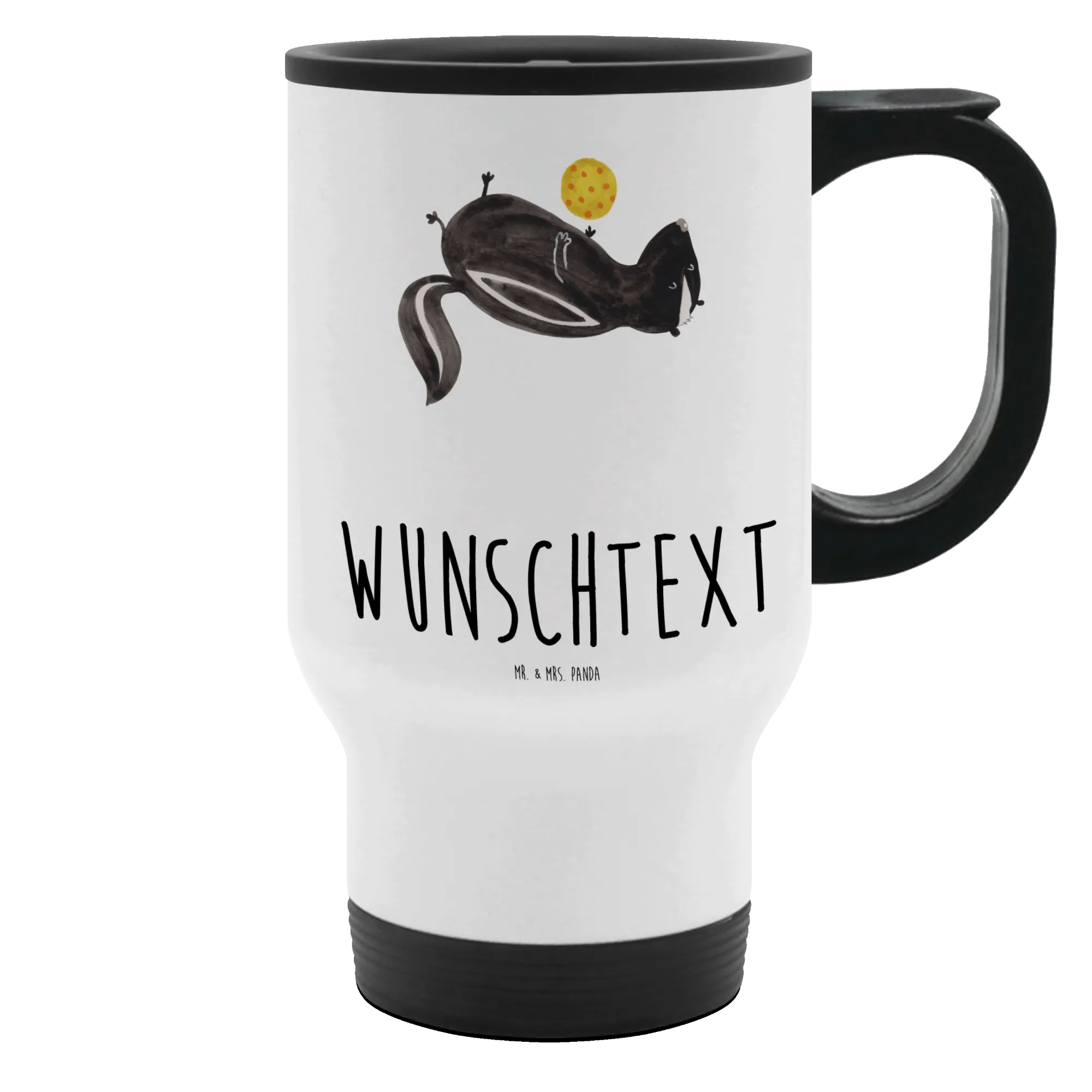 Du suchst nach dem perfekten Geschenk? Der personalisierte Thermobecher "Stinktier Ball" aus der Stinktier-Kollektion von Mr. & Mrs. Panda ist genau das, was du brauchst! Diese bezaubernde Thermotasse ist nicht nur ein praktischer Begleiter für deine Heißgetränke, sondern bringt auch noch ein Lächeln in deinen Tag. Mit einem fröhlichen Stinktier, das mit einem Ball spielt, ist dieser Becher ein wahrer Hingucker.