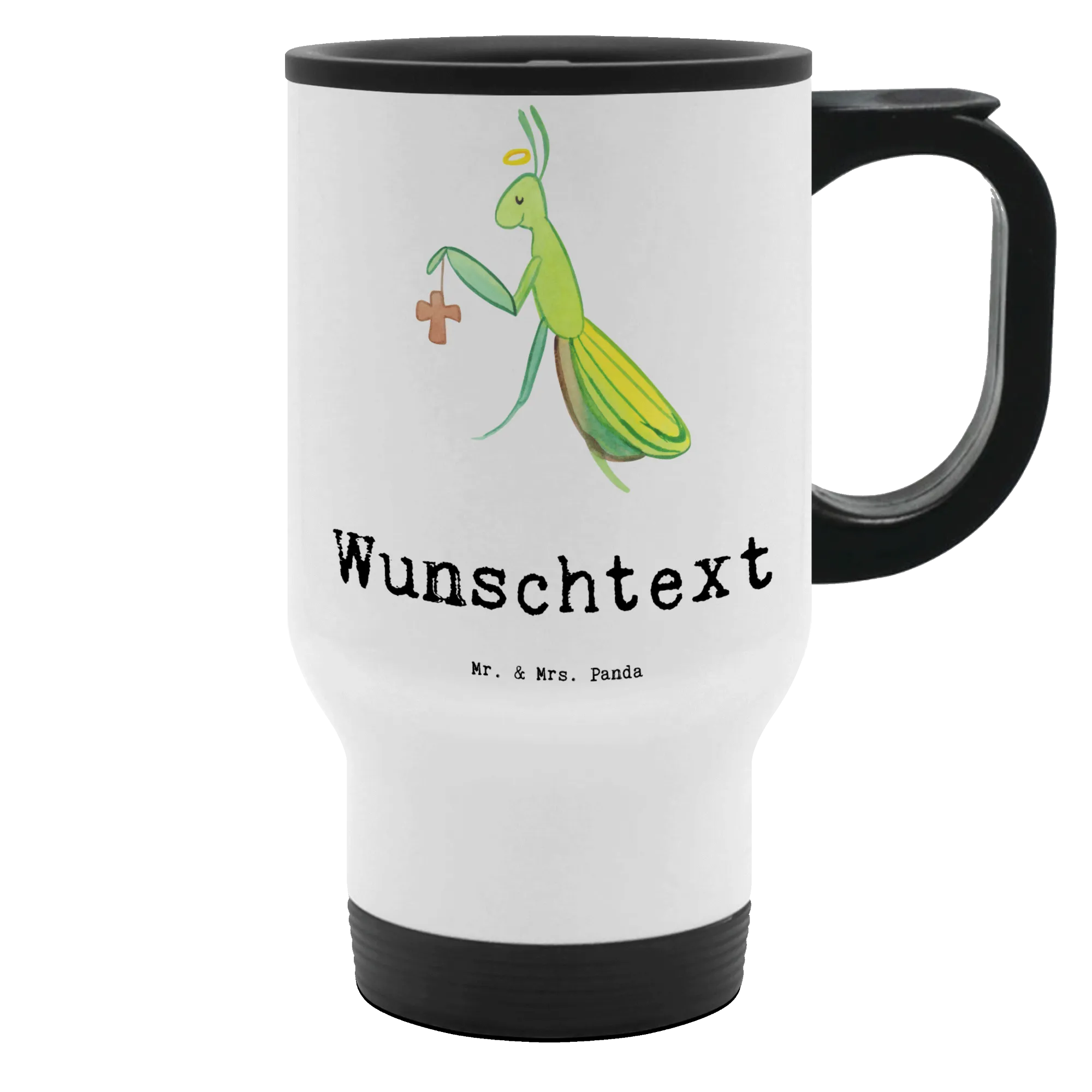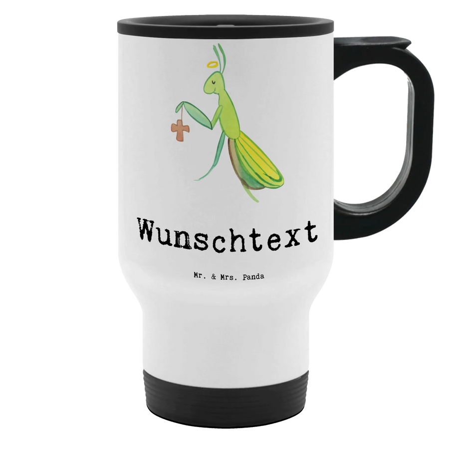Der personalisierte Thermobecher "Theologe mit Herz" von Mr. & Mrs. Panda ist das perfekte Geschenk für jeden Theologen oder angehenden Theologen. Mit einem liebevollen Design, das eine süße Gottesanbeterin mit einem Heiligenschein und einem Kreuz abbildet, kombiniert dieser Becher Funktionalität und Stil.