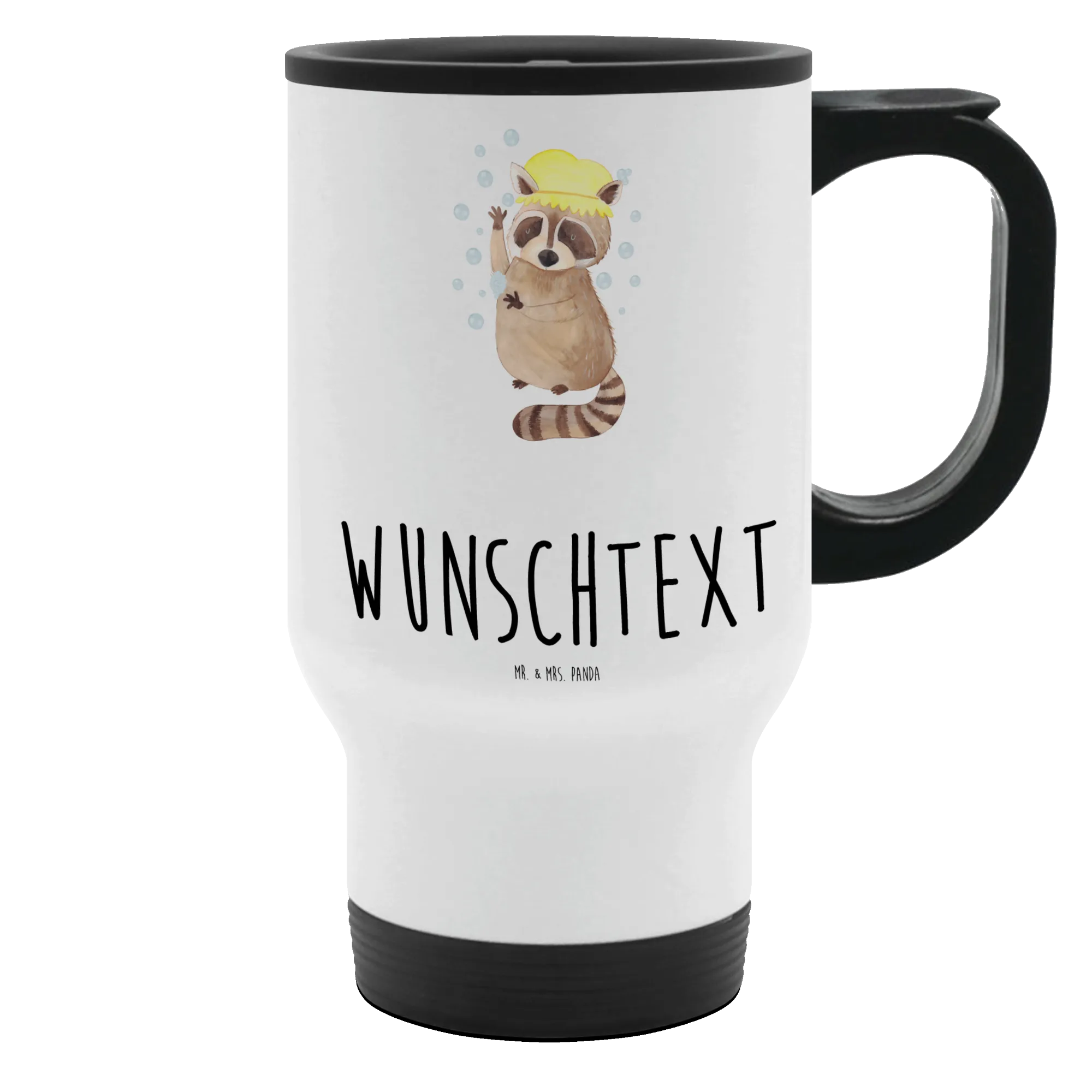 Du suchst nach dem perfekten Geschenk für dich selbst oder deine Liebsten? Dann ist der personalisierte Thermobecher mit dem süßen Waschbär-Motiv aus der Small World Kollektion von Mr. & Mrs. Panda genau das Richtige für dich! Dieser einzigartige Thermobecher ist nicht nur praktisch, sondern auch ein echter Hingucker. Sei es für deinen heißen Kaffee am Morgen oder einen leckeren Tee am Nachmittag - mit diesem Isolierbecher machst du garantiert jedem eine Freude.