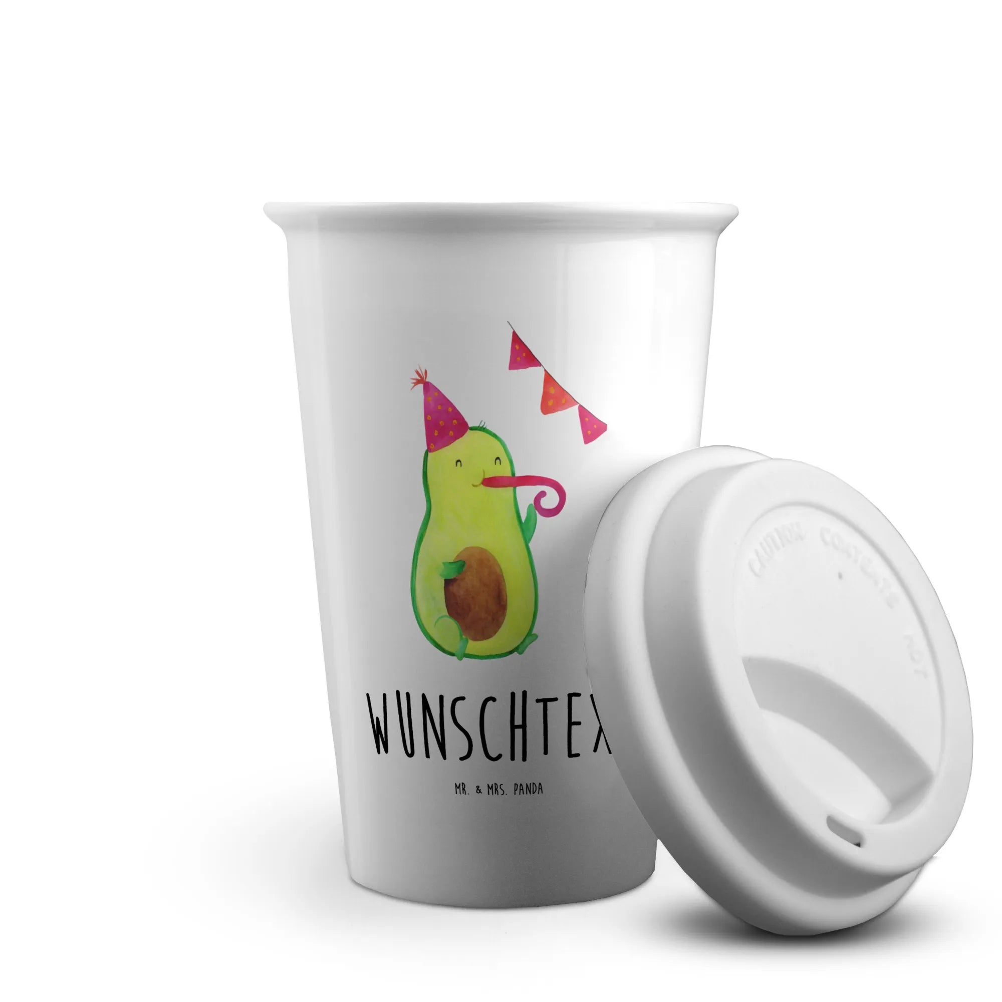 Der personalisierte To Go Becher Avocado Birthday von Mr. & Mrs. Panda ist das perfekte Geschenk für alle, die ihren Kaffee oder Tee auch unterwegs genießen möchten. Mit einem einzigartigen Design, das eine süße Avocado zeigt, die einen Partyhut trägt und in eine Partypfeife pustet, bringt dieser Becher nicht nur Freude, sondern auch Farbe in deinen Alltag.