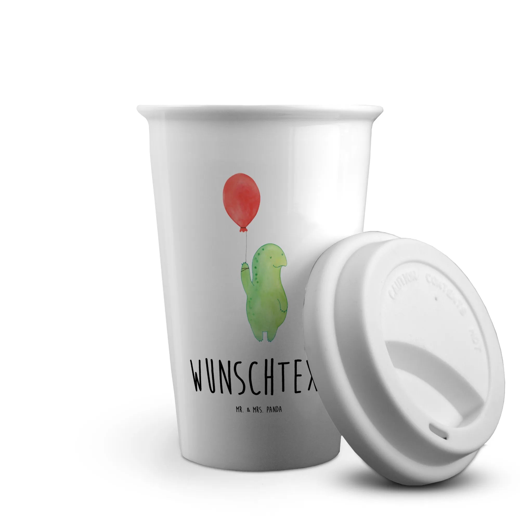 Du suchst das perfekte Geschenk für einen Schildkröten-Fan? Dann ist unser personalisierter To Go Becher mit dem süßen Motiv der Schildkröte Luftballon genau das Richtige! Der Becher ist nicht nur ein praktischer Begleiter für unterwegs, sondern bringt auch ein Lächeln ins Gesicht. Auf diesem wunderschönen Thermobecher schwebt eine niedliche Schildkröte an ihrem Luftballon und vermittelt das Motto 'Mutausbruch statt Wutausbruch'. Das Motiv ist liebevoll von Mrs. Panda handgezeichnet und wird jedem Tierliebhaber das Herz erwärmen.