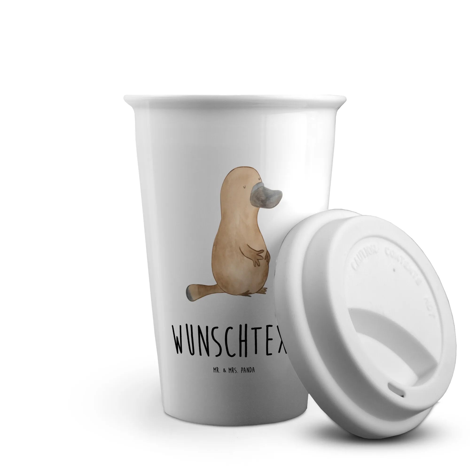 Der personalisierte To Go Becher mit dem süßen Schnabeltier Motiv "Mutig" von Mr. & Mrs. Panda ist das perfekte Geschenk für alle, die Mut brauchen oder einfach die kleine Auszeit mit ihrem Lieblingsgetränk genießen möchten! Egal ob für die große Weltreise, den nächsten Roadtrip oder einfach für den Weg zur Arbeit - dieser Kaffeebecher ist der ideale Begleiter.