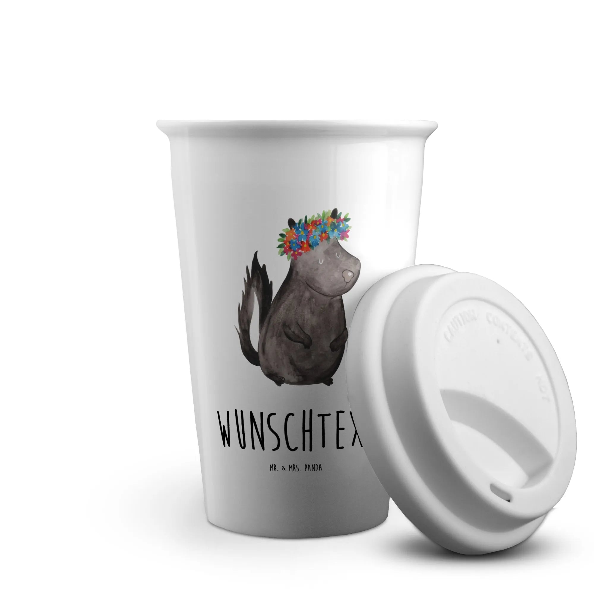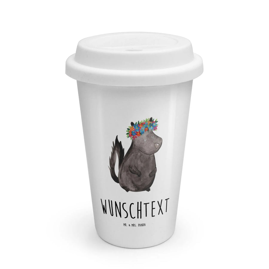 Der personalisierte To Go Becher Stinktier Blumenmädchen von Mr. & Mrs. Panda ist das perfekte Geschenk für alle, die das Besondere lieben. Mit seinen künstlerischen Motiven und einem tollen Spruch ist er nicht nur funktional, sondern auch ein wahres Schmuckstück. Ob als Kaffeebecher für den täglichen Kaffee im Büro oder als Begleiter beim Yoga, dieser Thermobecher bringt ein Lächeln in Deinen Alltag. Du kannst ihn ganz nach Deinem Wunsch personalisieren - sei es mit Deinem Namen oder einem besonderen Text, der Deine Persönlichkeit widerspiegelt.