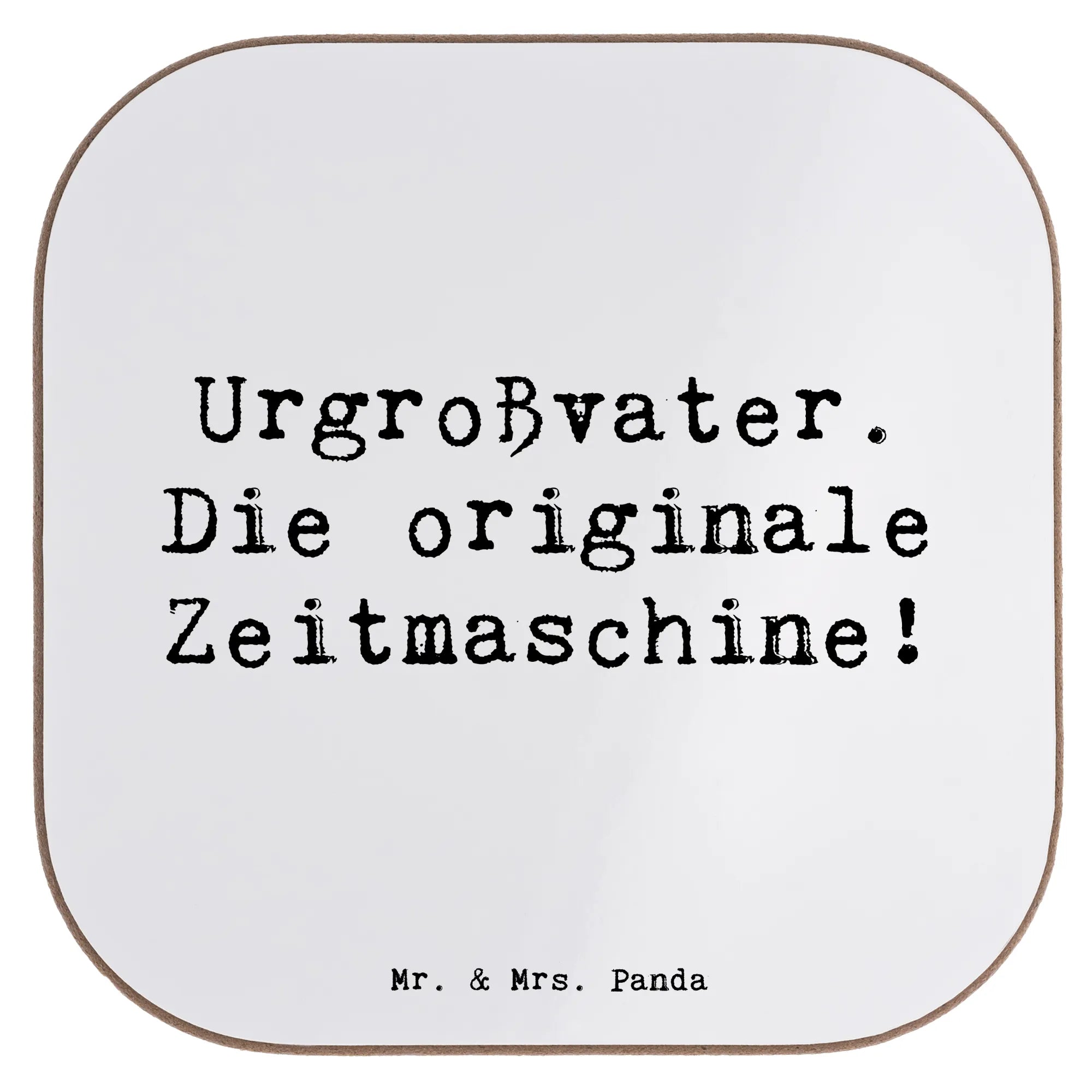 Der personalisierte Untersetzer 'Urgroßvater. Die originale Zeitmaschine!' aus der Kollektion Familie & Verwandte von Mr. & Mrs. Panda ist ein wunderschönes Geschenk für alle, die ihre Familie und deren Geschichte wertschätzen. Mit einem charmanten Motiv, das den Urgroßvater ehrenvoll darstellt, wird dieser Untersetzer zu einem besonderen Accessoire für jeden Haushalt.