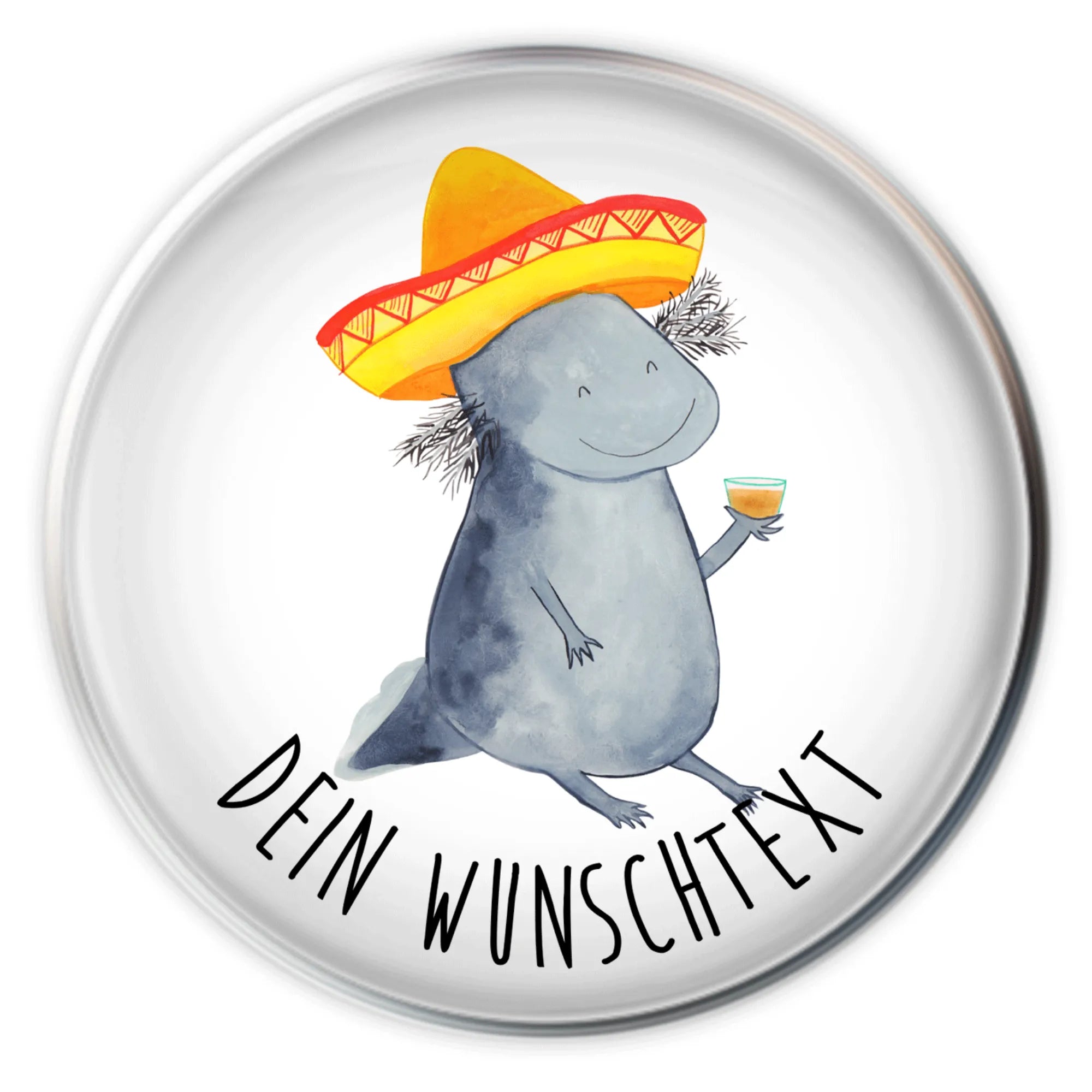 Zeige deine Liebe zum Axolotl und mach dein Zuhause zu einem Ort, an dem Freude und gute Laune herrschen. Hol dir deinen personalisierten Waschbeckenstöpsel mit Axolotl Tequila Motiv von Mr. & Mrs. Panda und genieße jeden Tag ein Stück Lebensfreude!