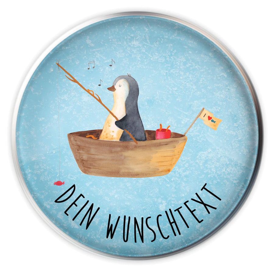 Personalisierter Waschbecken Stöpsel Pinguin Angelboot - Eisblau