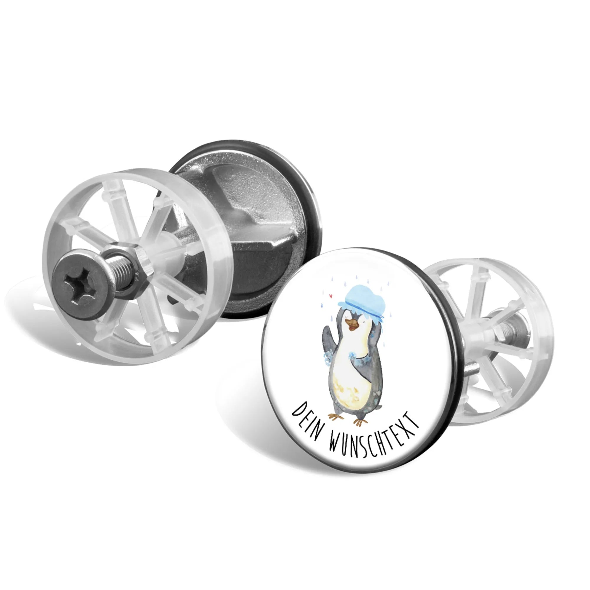 Der fröhliche Pinguin, der unter dem Regenschauer steht und dabei eine Duschhaube trägt, sorgt für ein Lächeln bei jedem, der deinen Waschbeckenstöpsel sieht. Ob für den eigenen Gebrauch oder als liebevolles Geschenk – dieser personalisierte Waschbeckenstöpsel ist ideal, um jedem Raum eine persönliche Note zu verleihen.