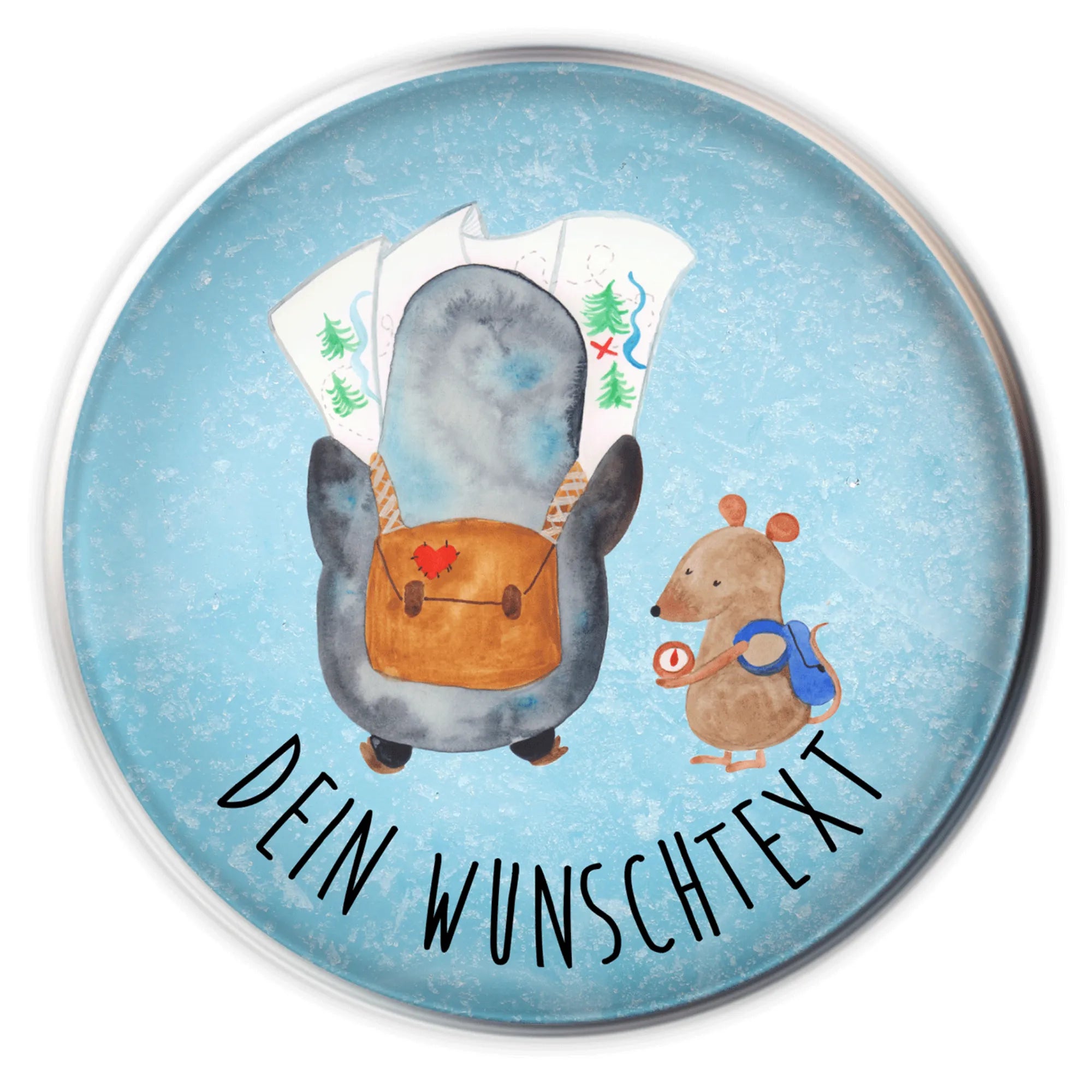 Personalisierter Waschbecken Stöpsel Pinguin & Maus Wanderer - Eisblau