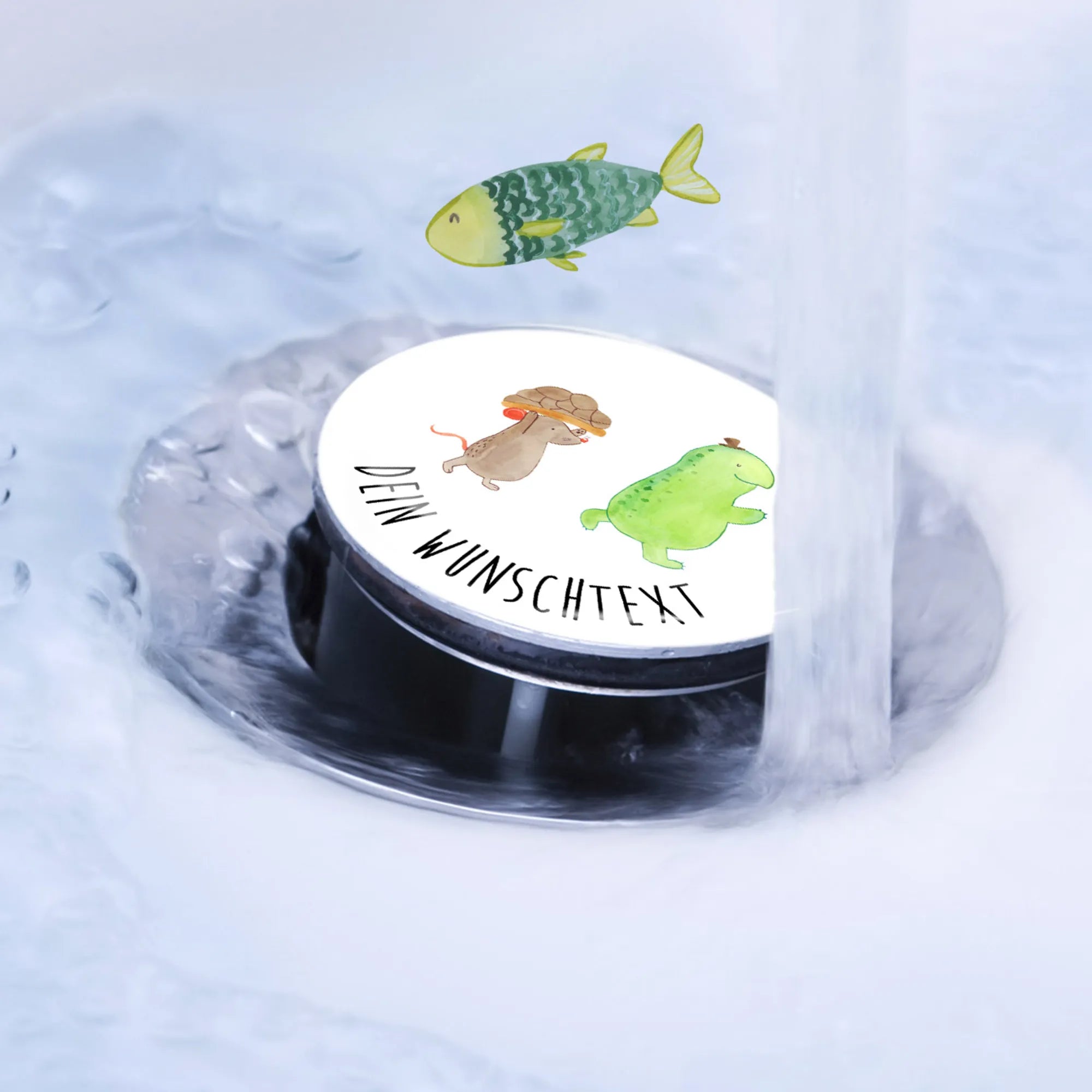 Personalisierter Waschbecken Stöpsel Schildkröte & Maus - Weiß