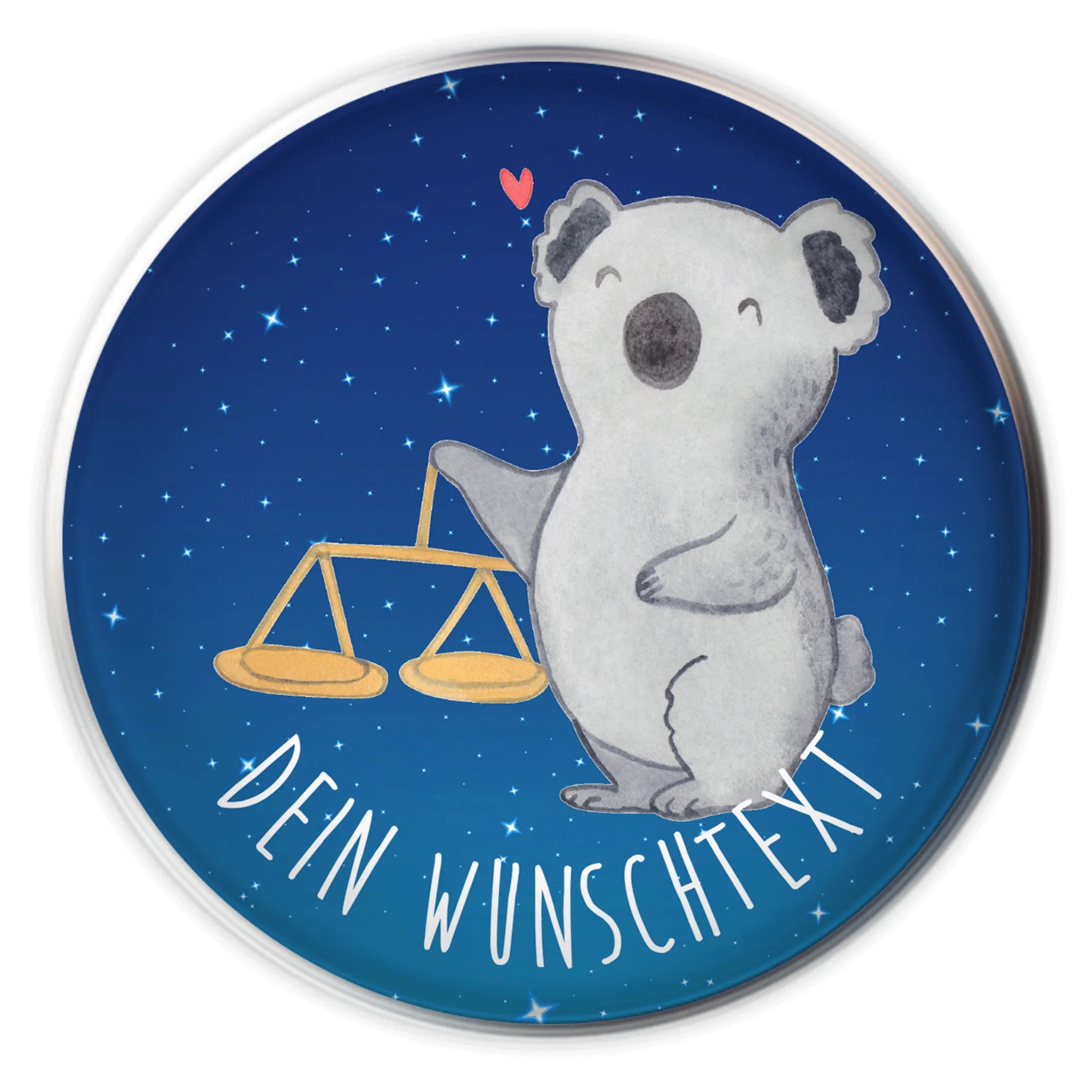Entdecke die zauberhafte Welt der Waage mit unserem einzigartigen Motiv, das einen fröhlichen Koala zeigt, der friedlich neben einer symbolischen Balkenwaage steht. Das Herz über seinem Kopf strahlt Wärme und Zuneigung aus und spiegelt die Eigenschaften des Sternzeichens Waage wider. Waage-Geborene sind bekannt für ihr Streben nach Balance und Harmonie, und dieses Motiv verkörpert genau diese Werte. Es lädt ein, über die kleinen Dinge im Leben nachzudenken und die Schönheit des Augenblicks zu genießen. Schenke dieses liebevolle Design einem speziellen Menschen an ihrem Geburtstag oder verwöhne dich selbst mit einem Stück, das jeden Tag Freude bringt.